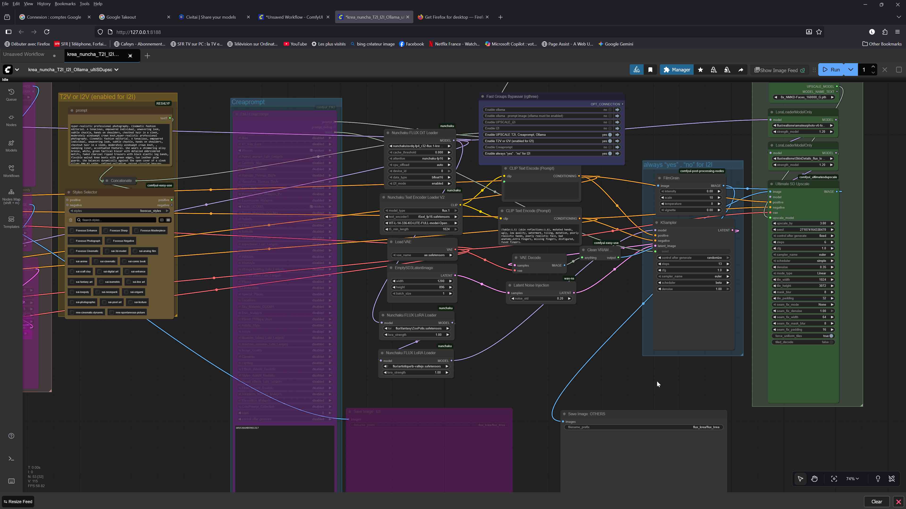 Workflow Using Krea in nunchaku version. T2I, I2I, Creaprompt, which allows you to create prompts from thematic lists. Ollama, which allows you to use 5 prompt systems: