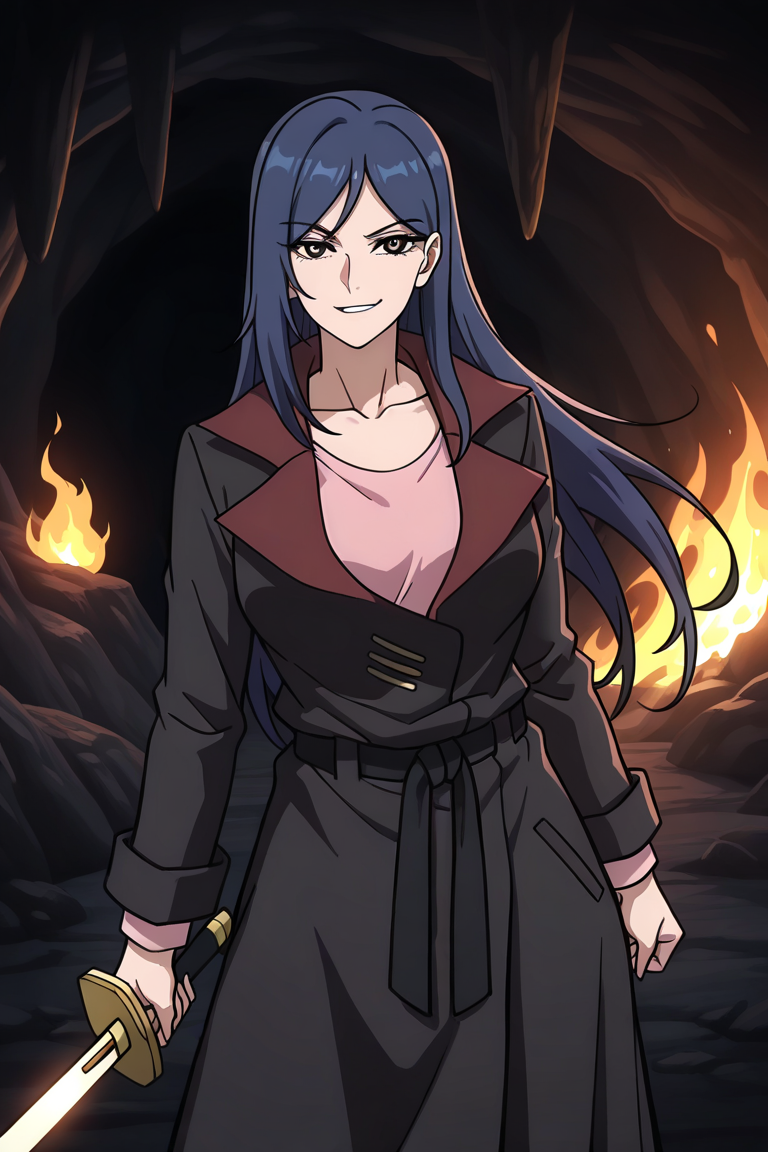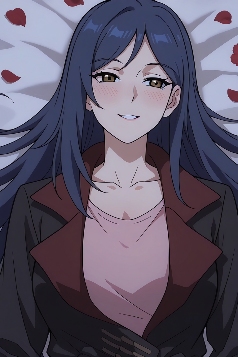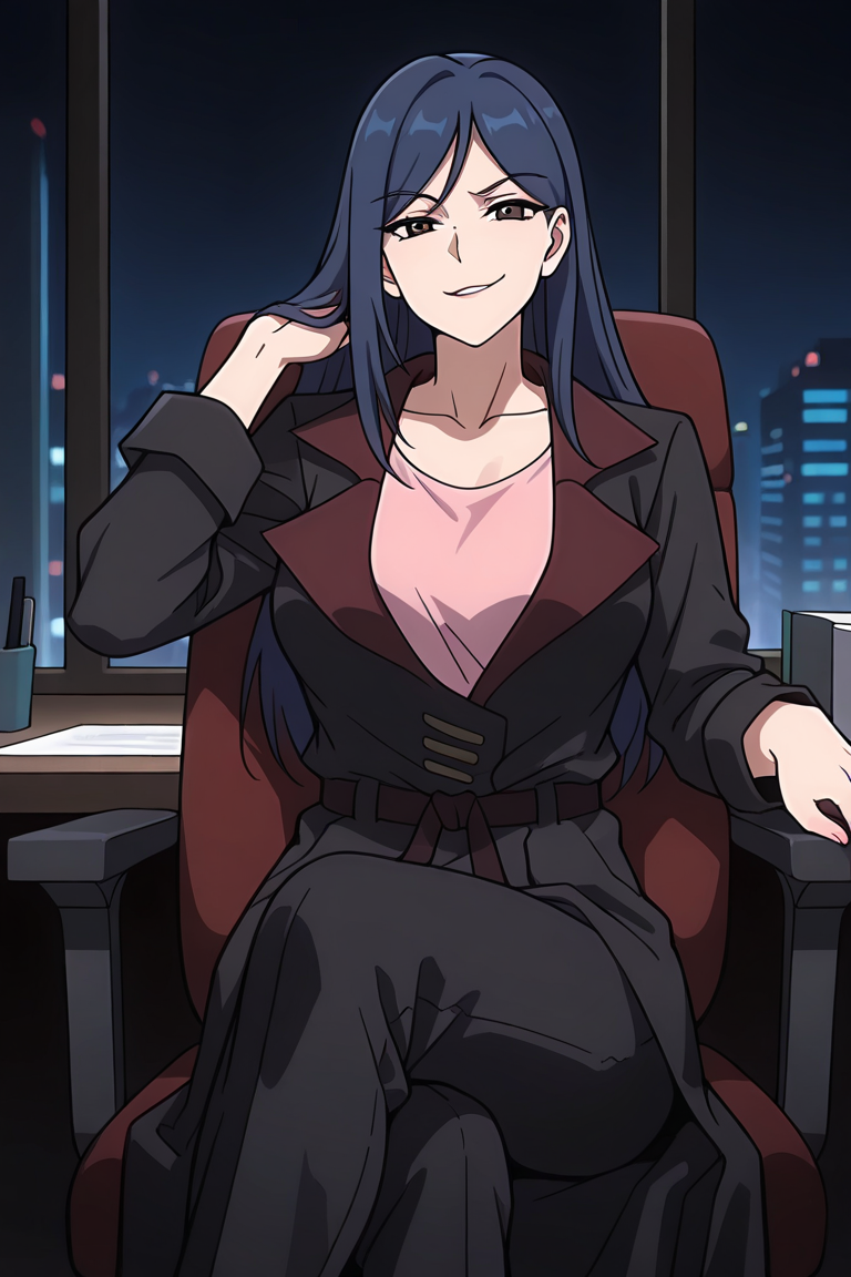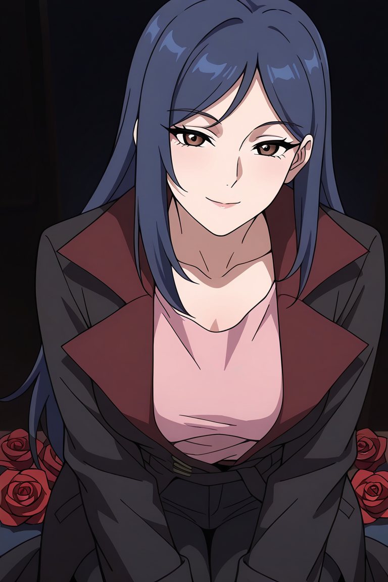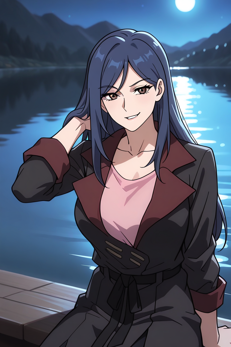 FuHongxue, long hair, dark blue hair, brown eyes, medium breasts