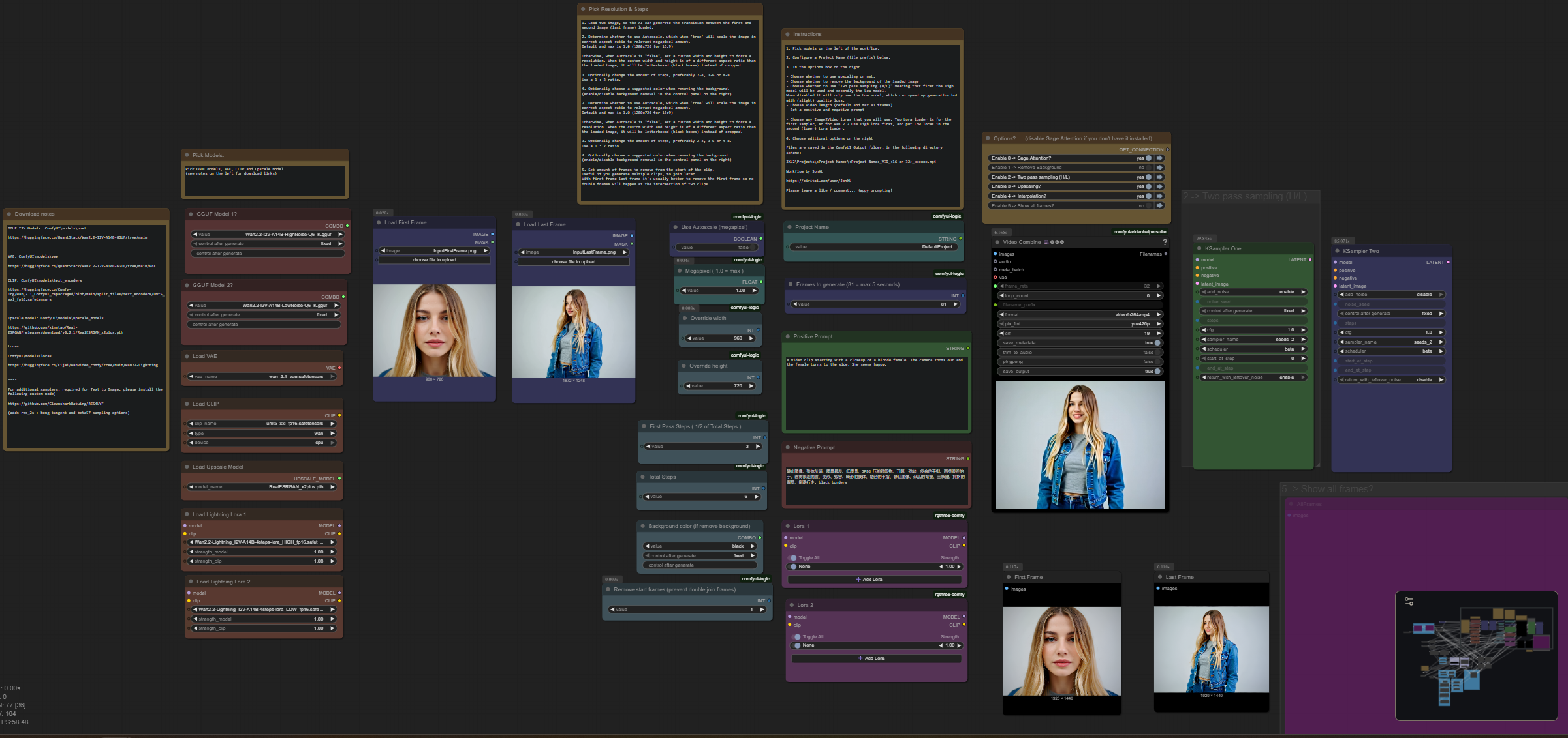 • Wan 2.2 First-Last-Frame to Video Workflow to generate consistent videos starting from one start frame to an end frame. With optional background removal, upscale and interpolation.