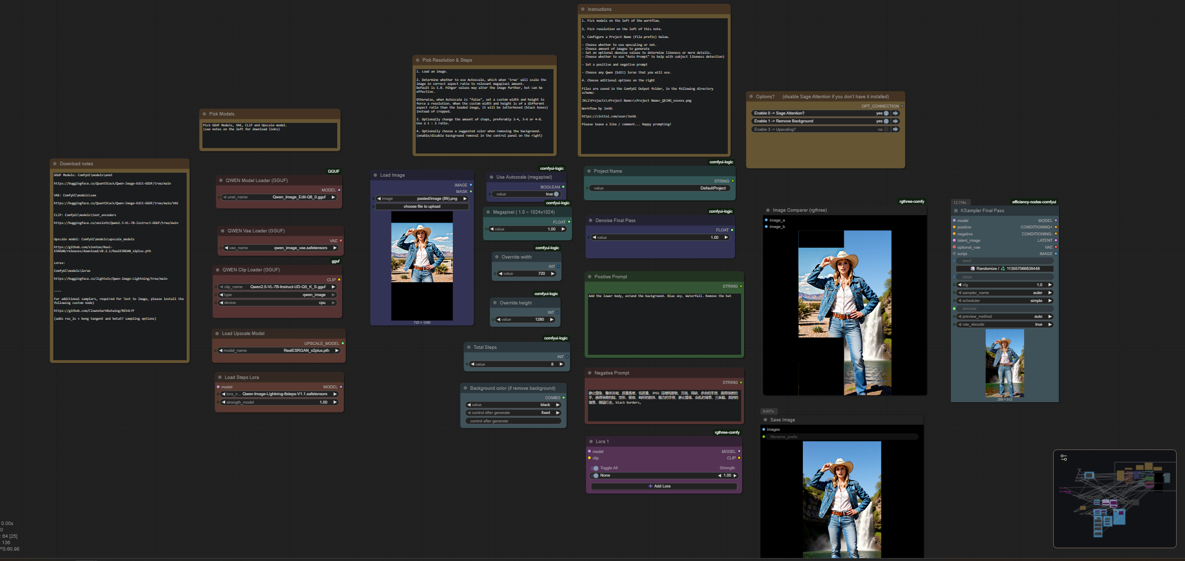 • Qwen Edit workflow with integrated resize and optional background removal.