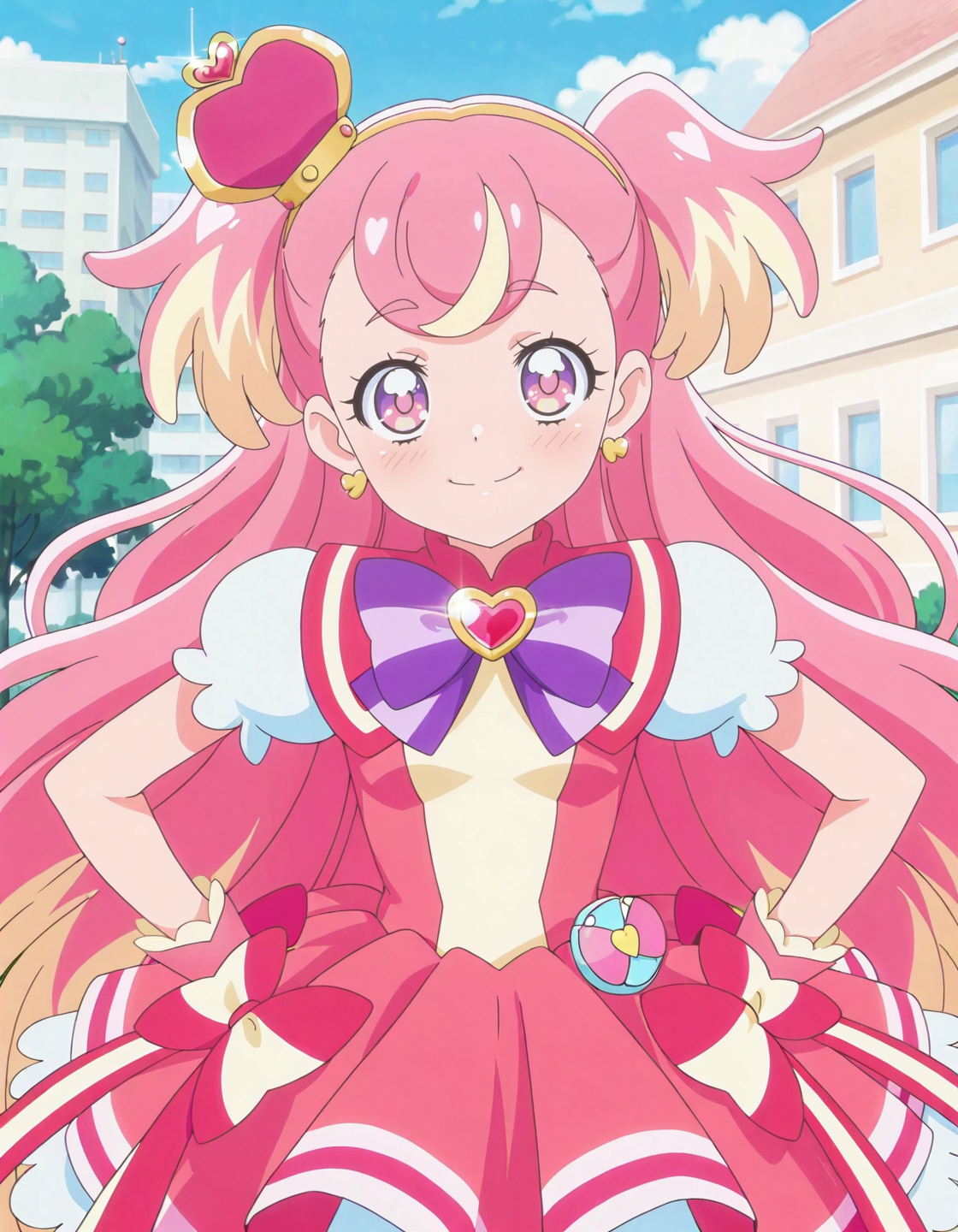 anime screencap, solo,1girl,curewonderful,wonderfulcostume,purple bowtie<lora:curewonderful_IL:0.8> high definition,amazing quality,best quality,very aesthetic,masterpiece,absurdres,