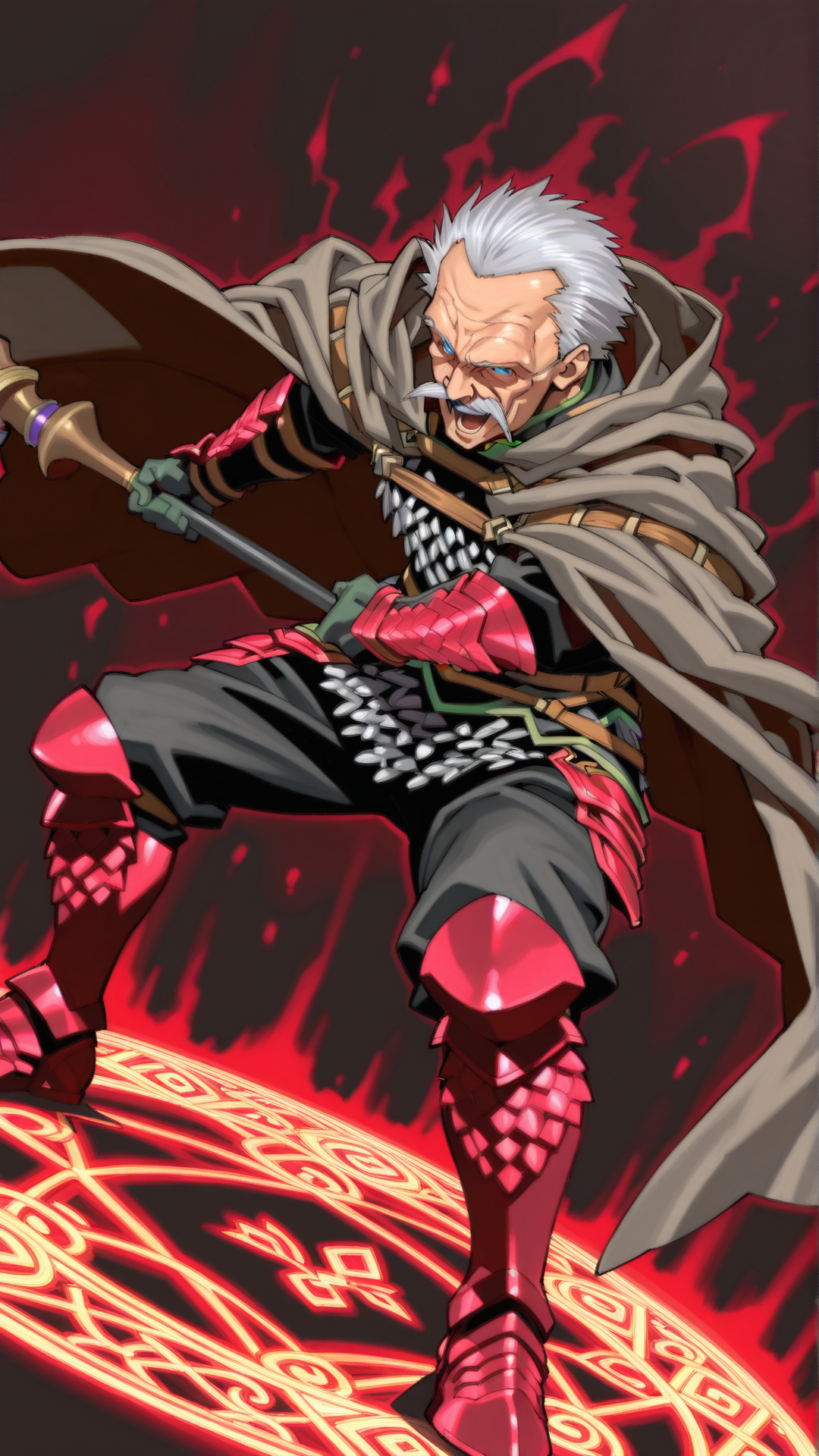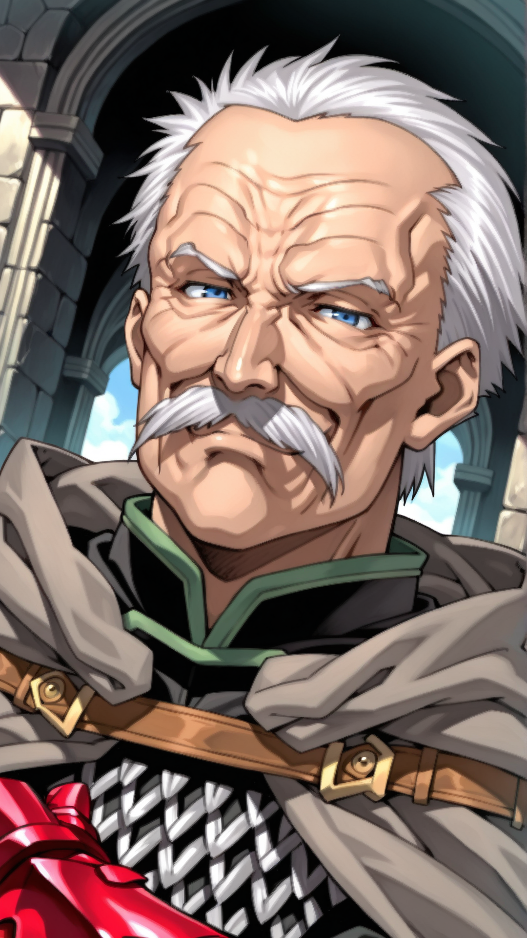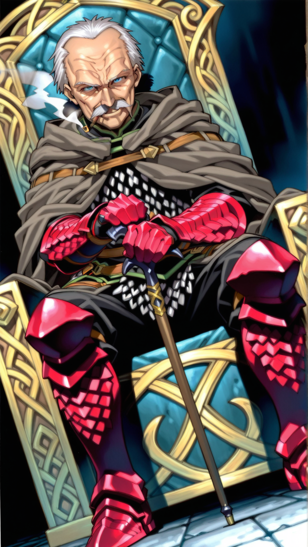 gandar\(valkyrie profile\),old man, mustache, wrinkled skin, blue eyes,