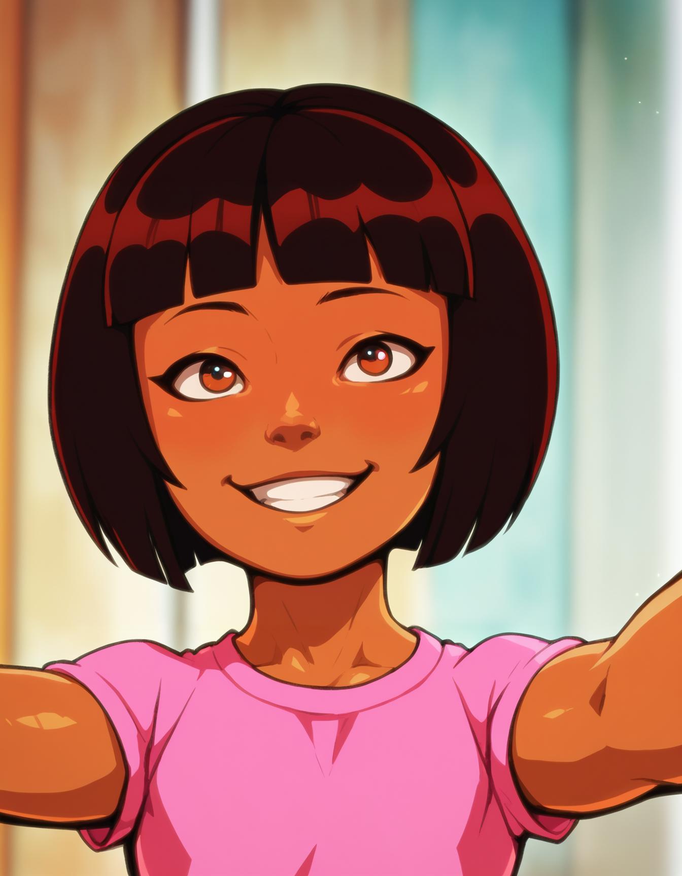 ponpudora,1girl,solo, dark skin,brown hair,short hair,flat chest, bob cut,