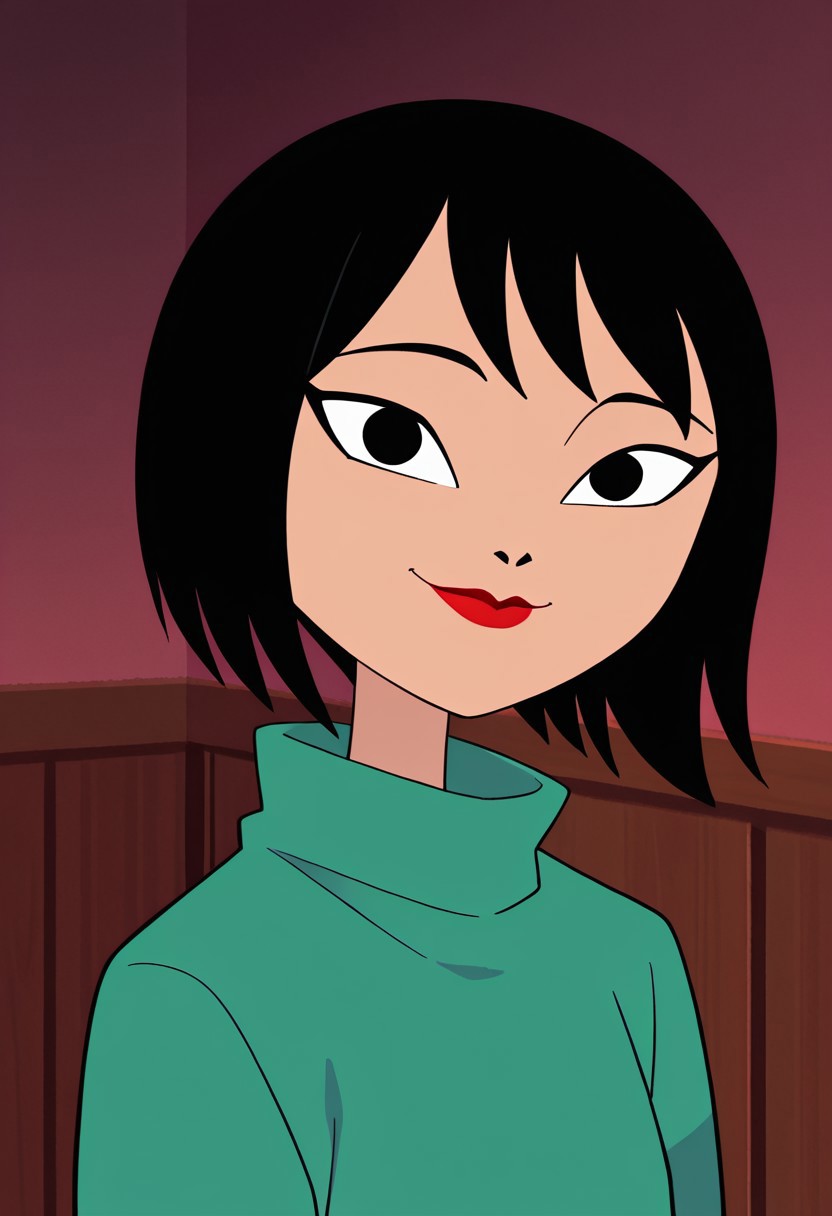 1girl, solo, AshiSJ_IL, fair skin, red lipstick, large eyes, black eyes, black sharp eyeliner, short hair, black hair