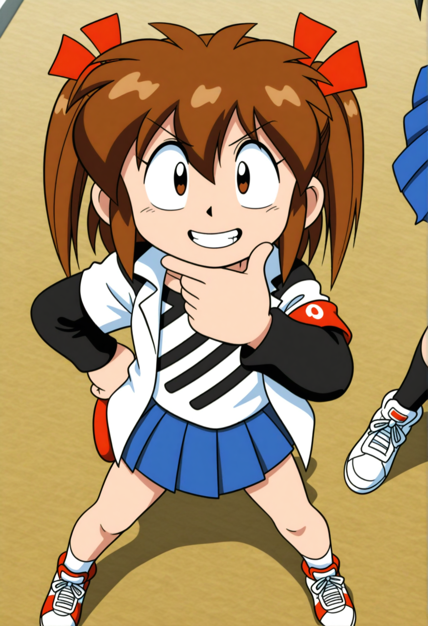 1girl,brown hair,short hair,hair between eyes,pleated skirt,shoes,socks,miniskirt,sneakers,t-shirt