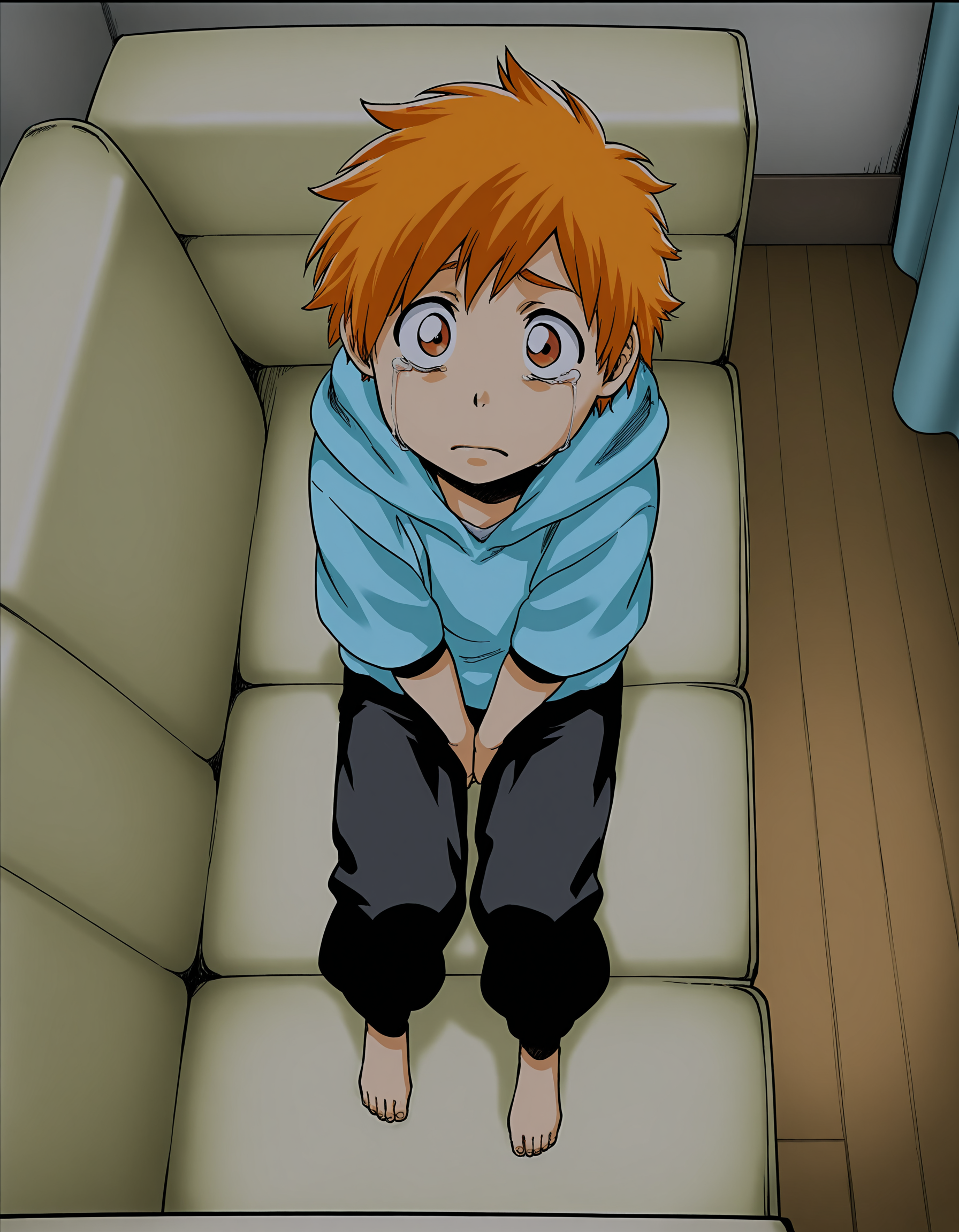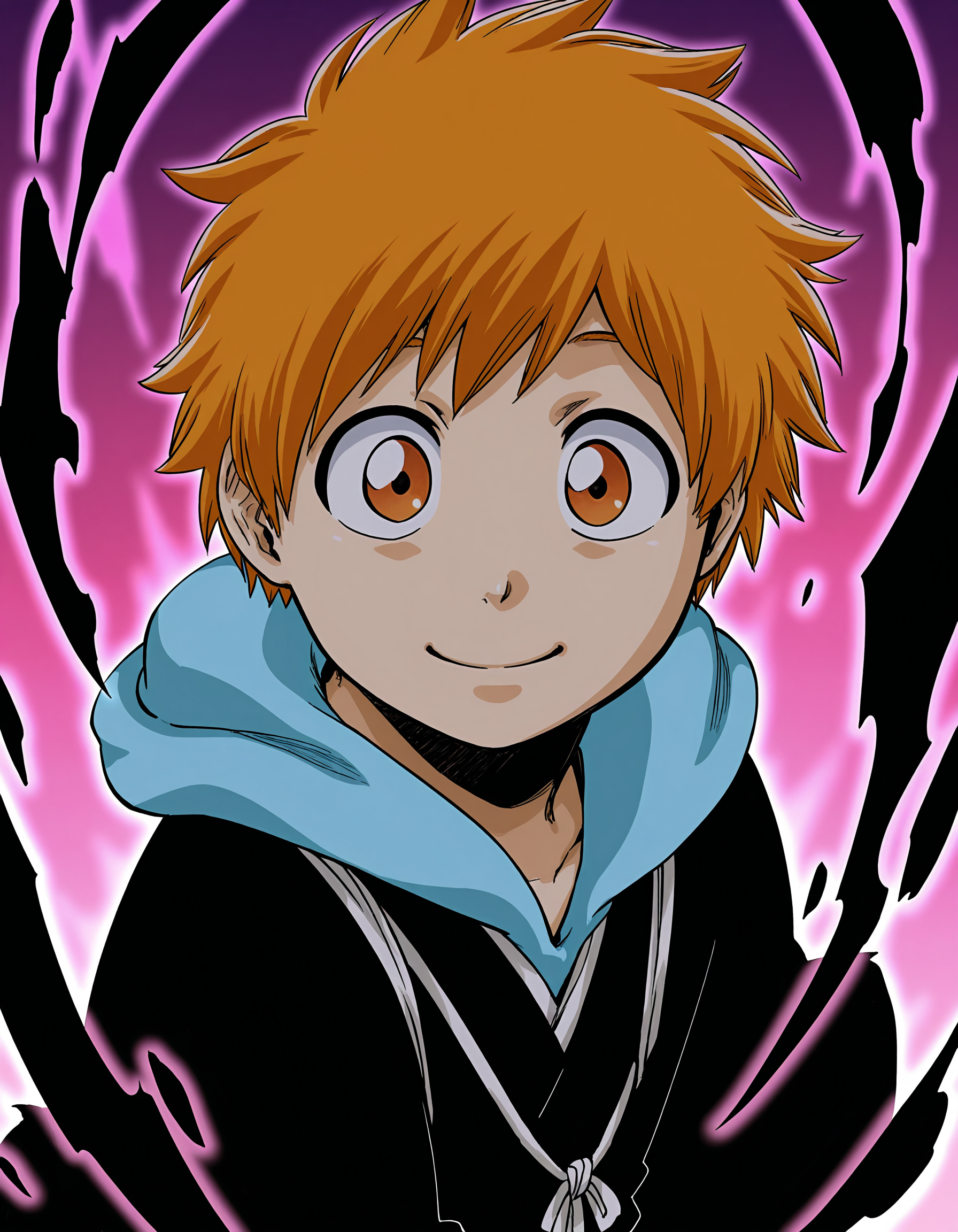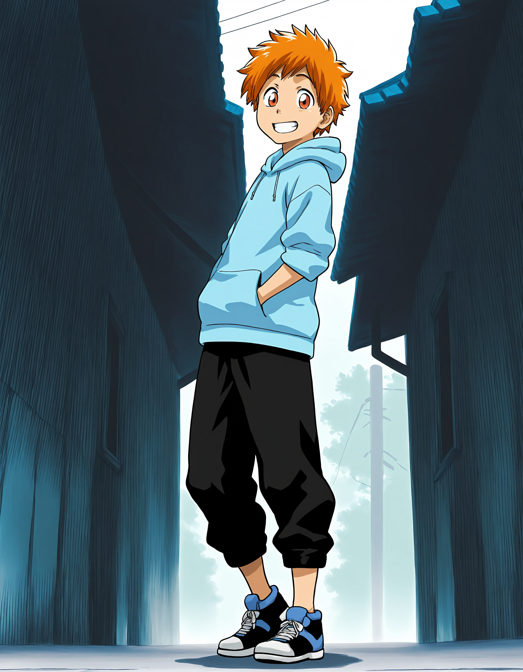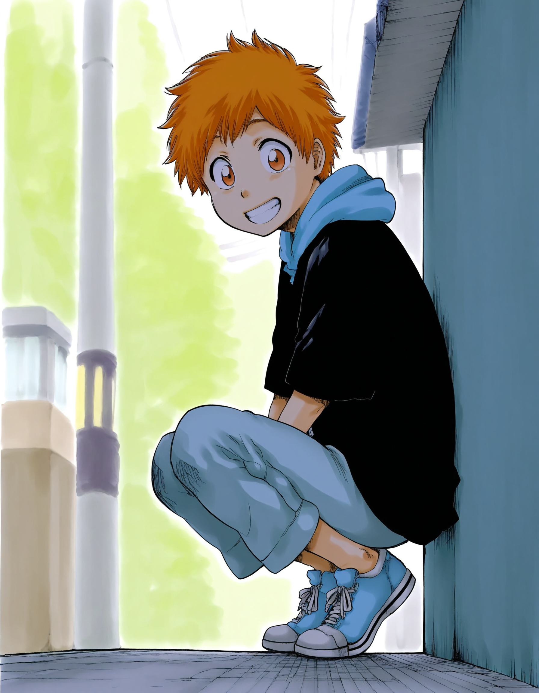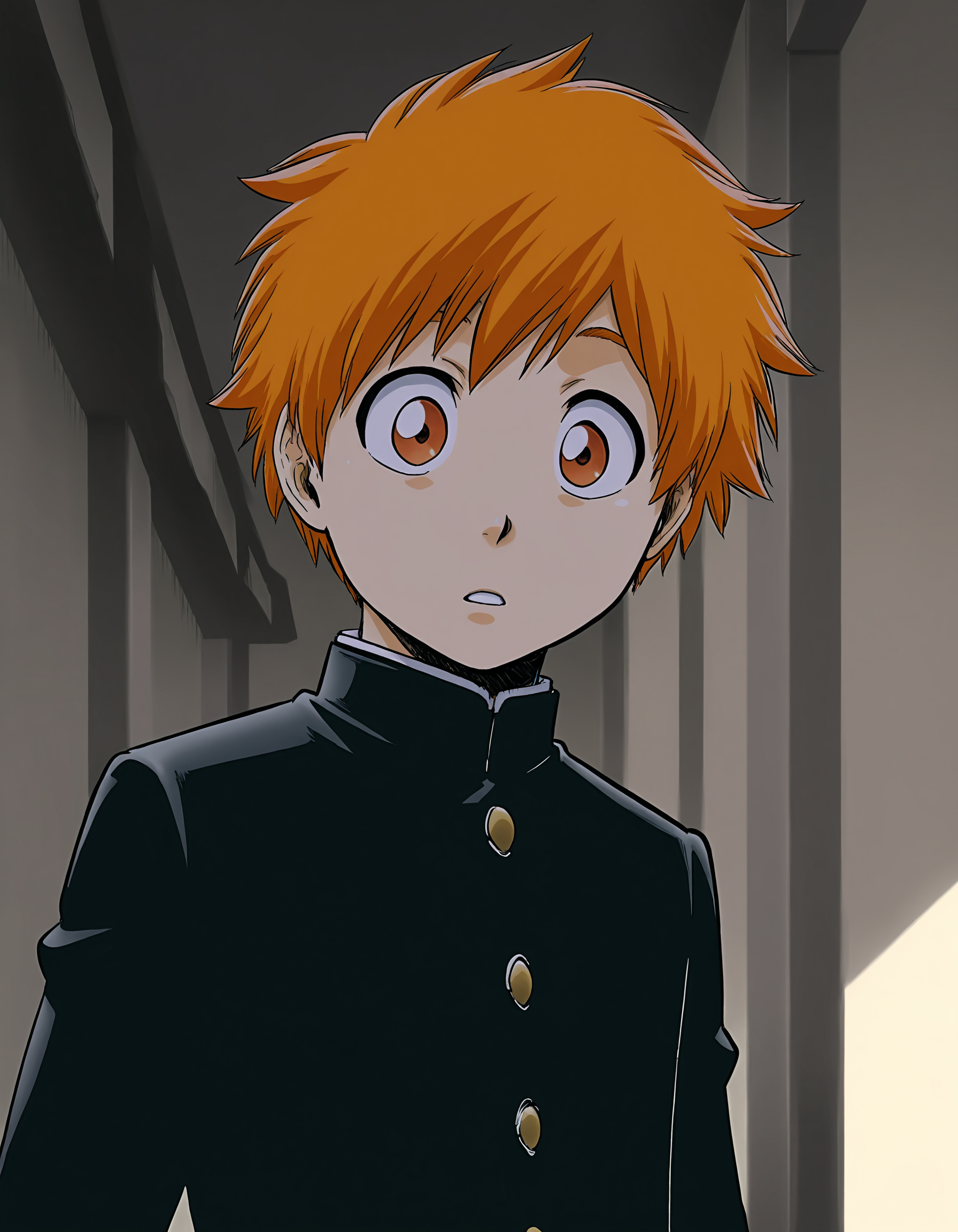 kazui kurosaki, male focus, 1boy, solo, short hair, orange hair, orange eyes,
