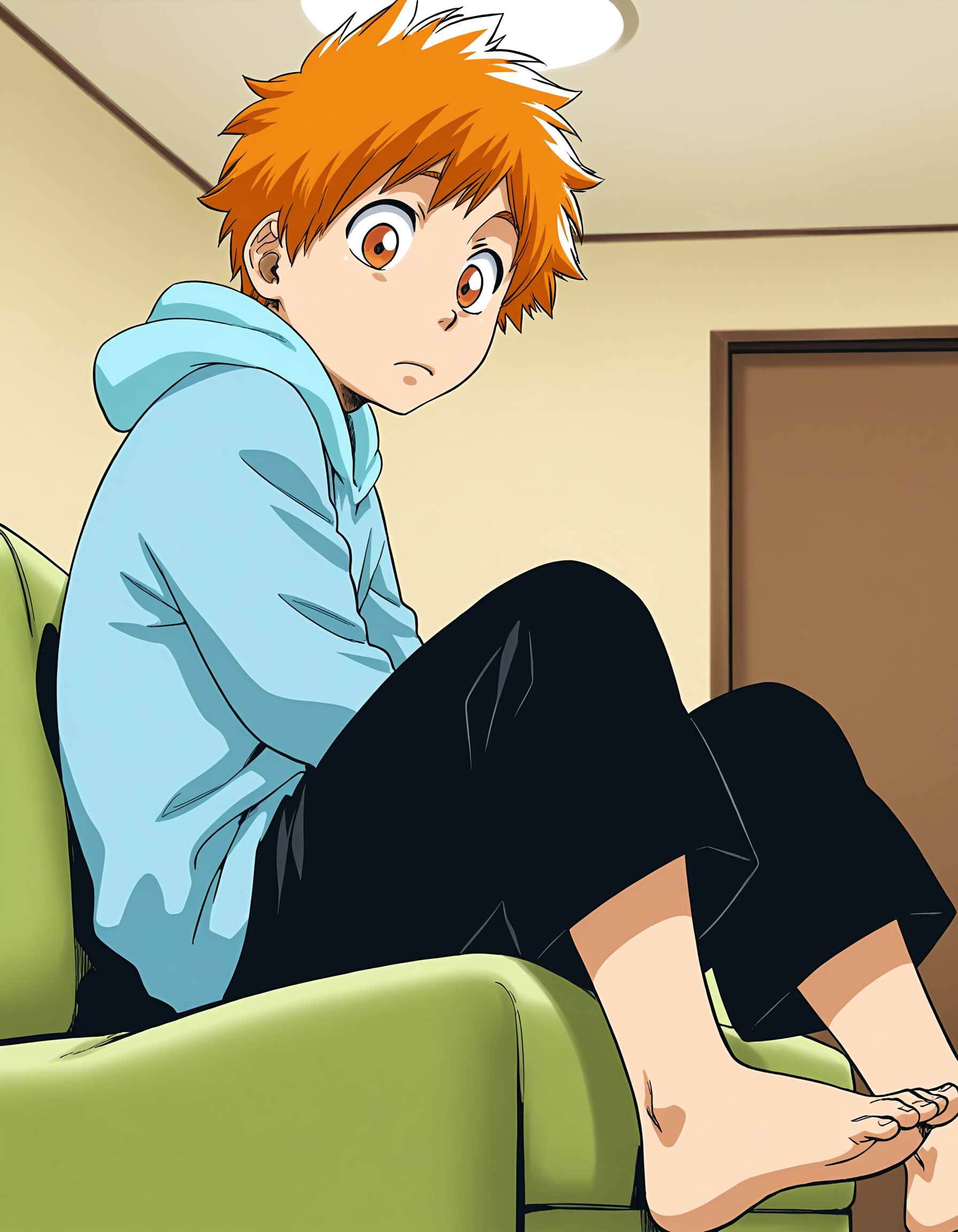Trigger Words :kazui kurosaki, male focus, 1boy, solo, short hair, orange hair, orange eyes,