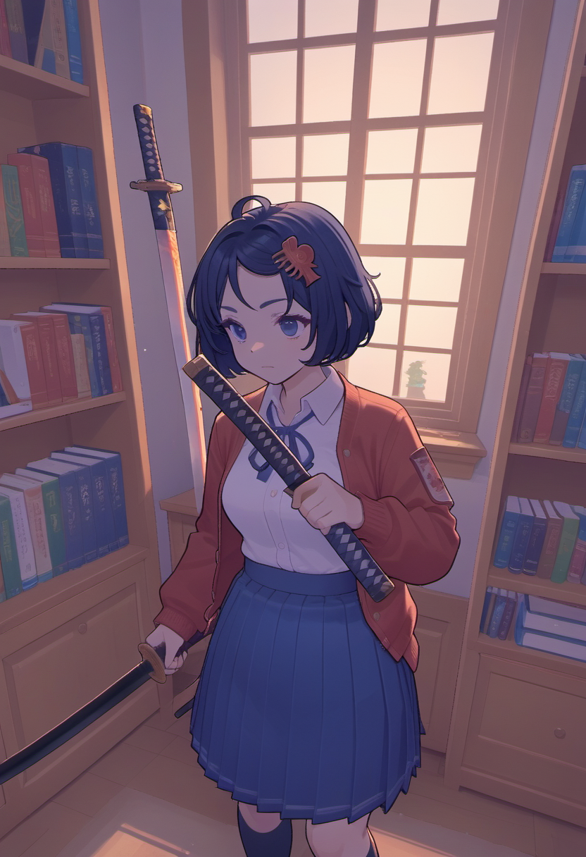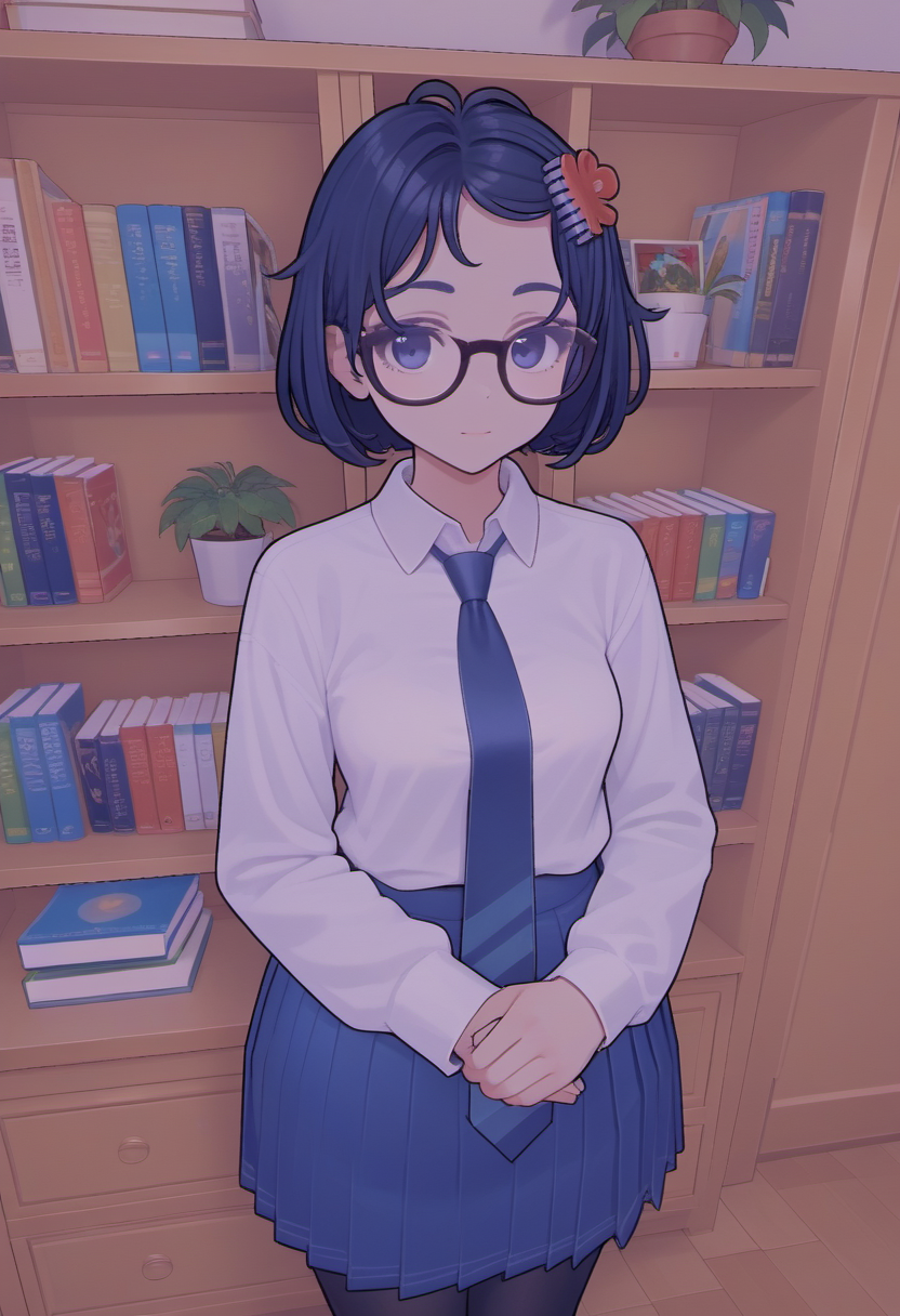 Trigger Words: mila, short hair, purplish blue hair, purplish blue eyes