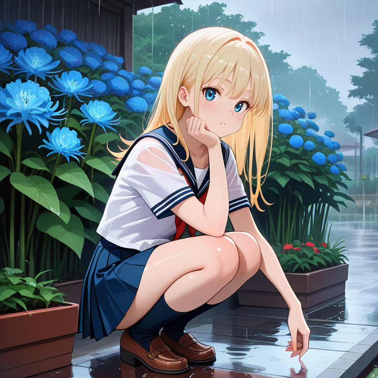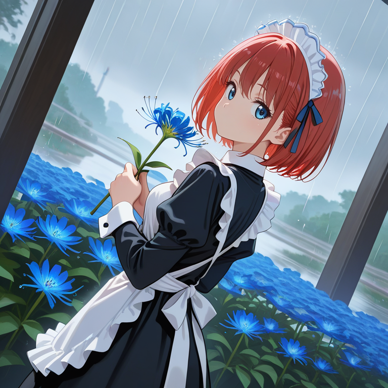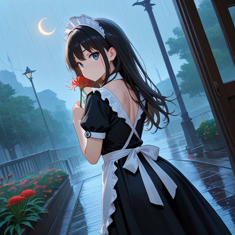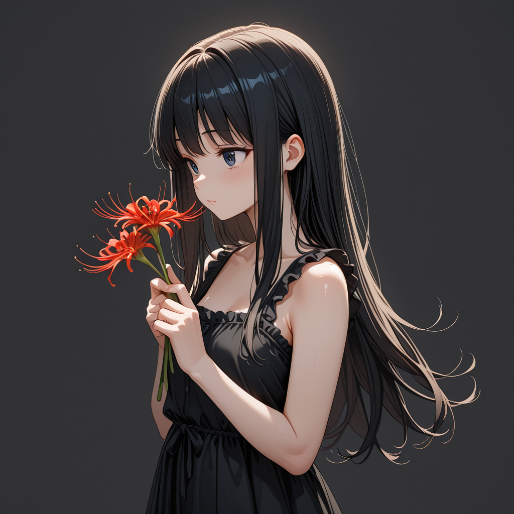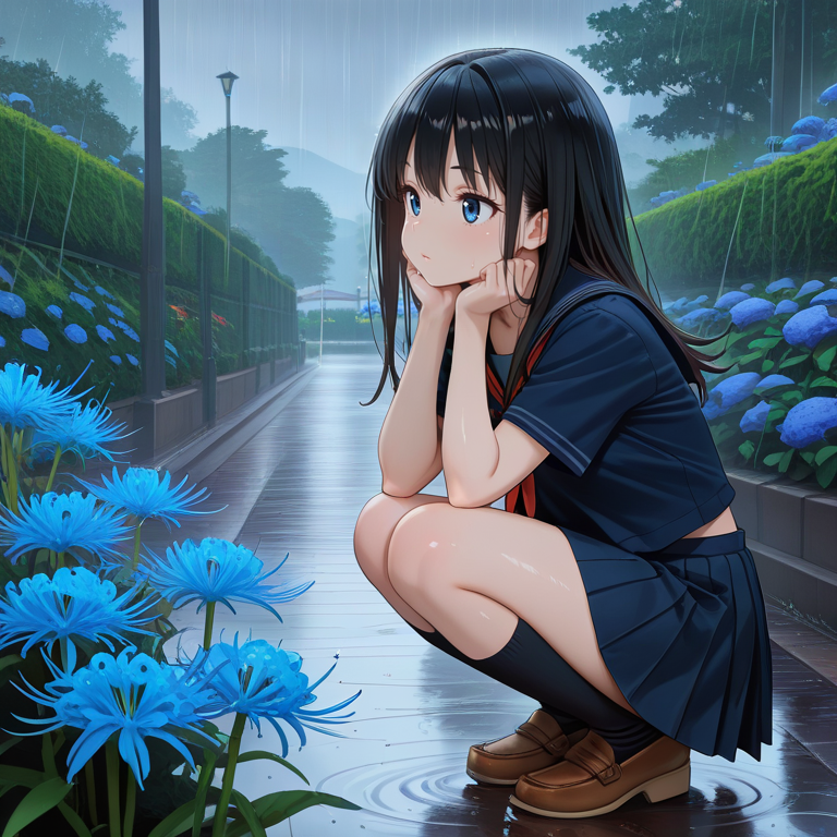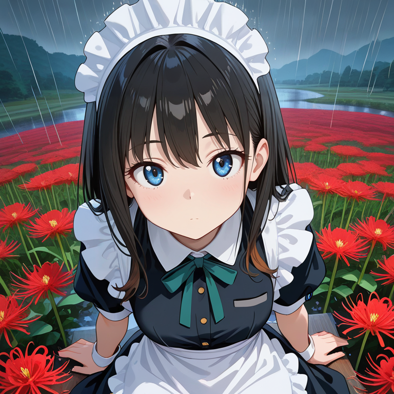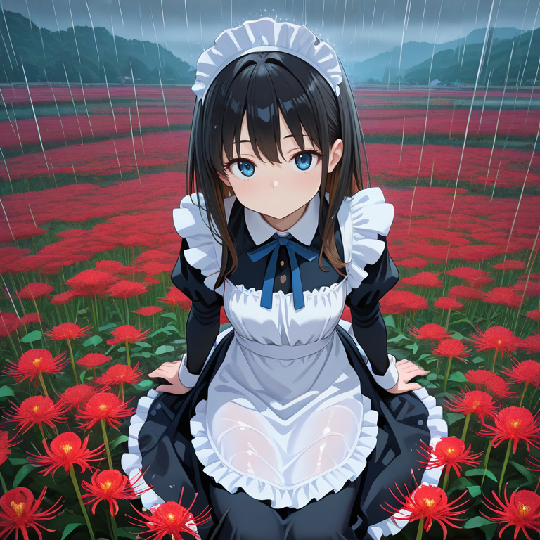基本これだけで出ますが、aiの認識の問題から、「花(flower))と単純に指定しても、LoRAから呼び出す場合、女の子が飛び出しやすいです。