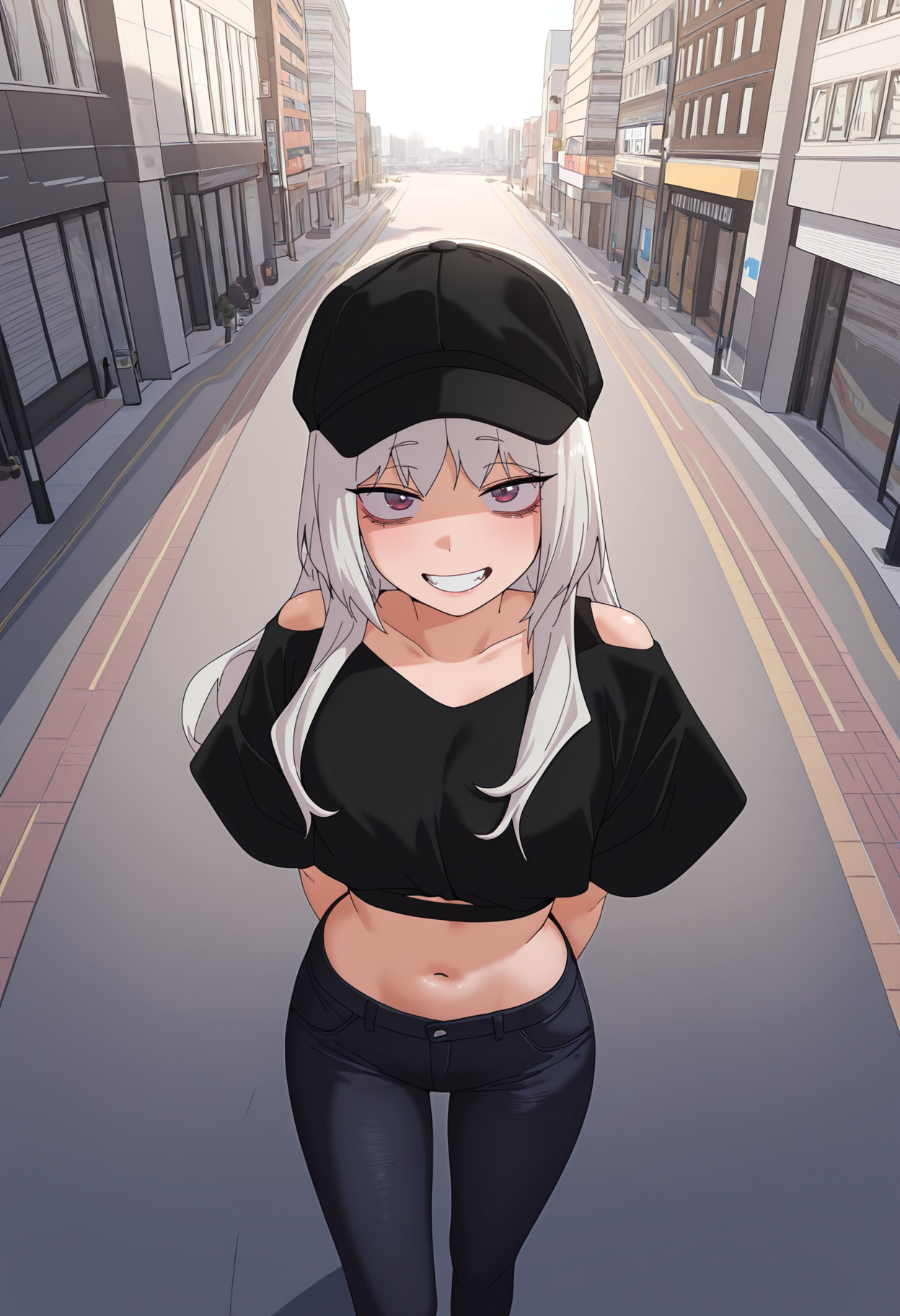 crow manhwa style, 1girl, Somin, solo, white hair, pink eyes, baggy eyes, thin, slim, cute,