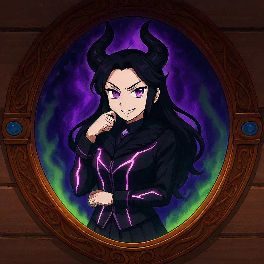 Positive: portrait of <your character description>, mirror_apparition, upper body inside ornate oval mirror, solid projection, swirling purple and green magic in the mirror, wooden frame, dramatic lighting,