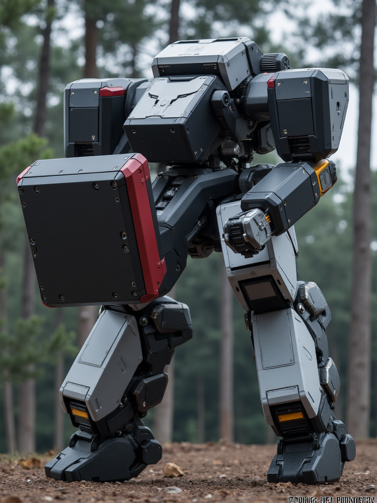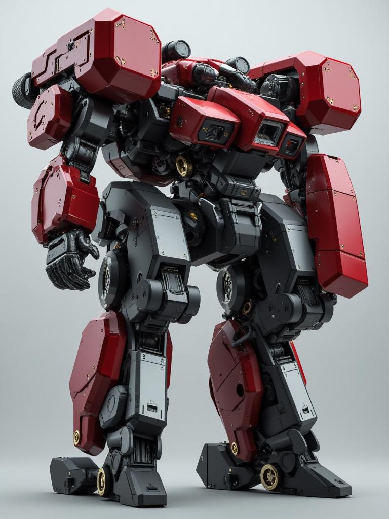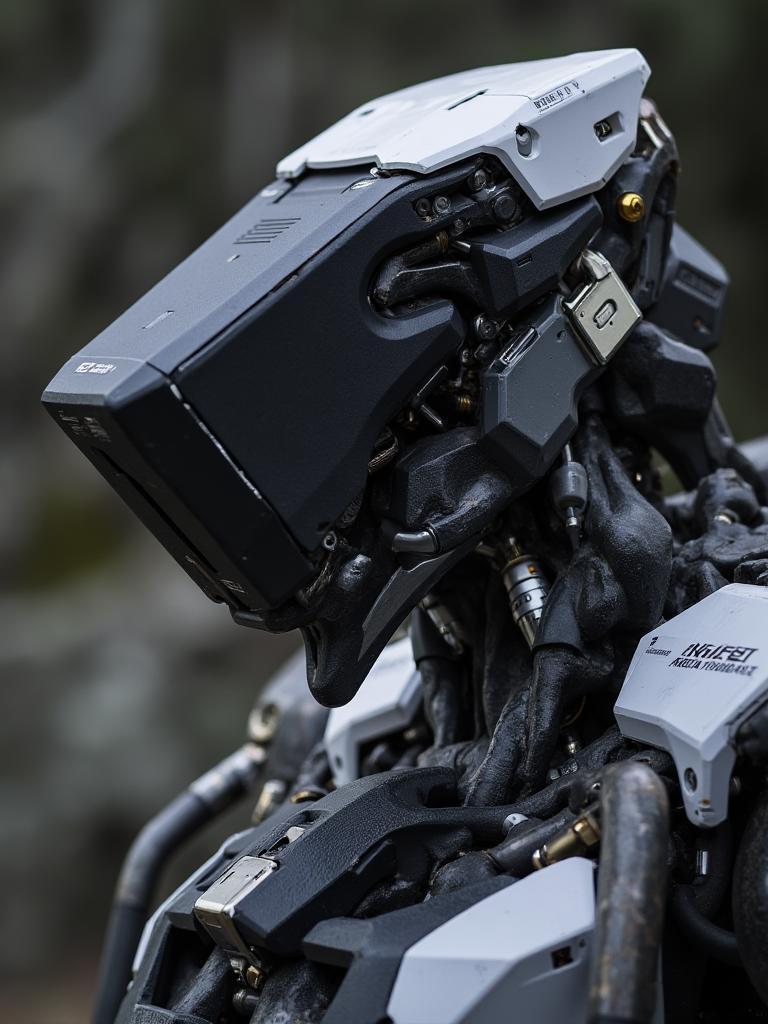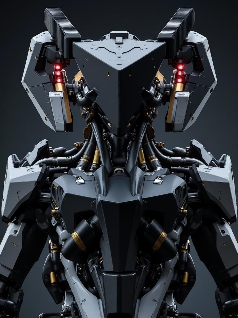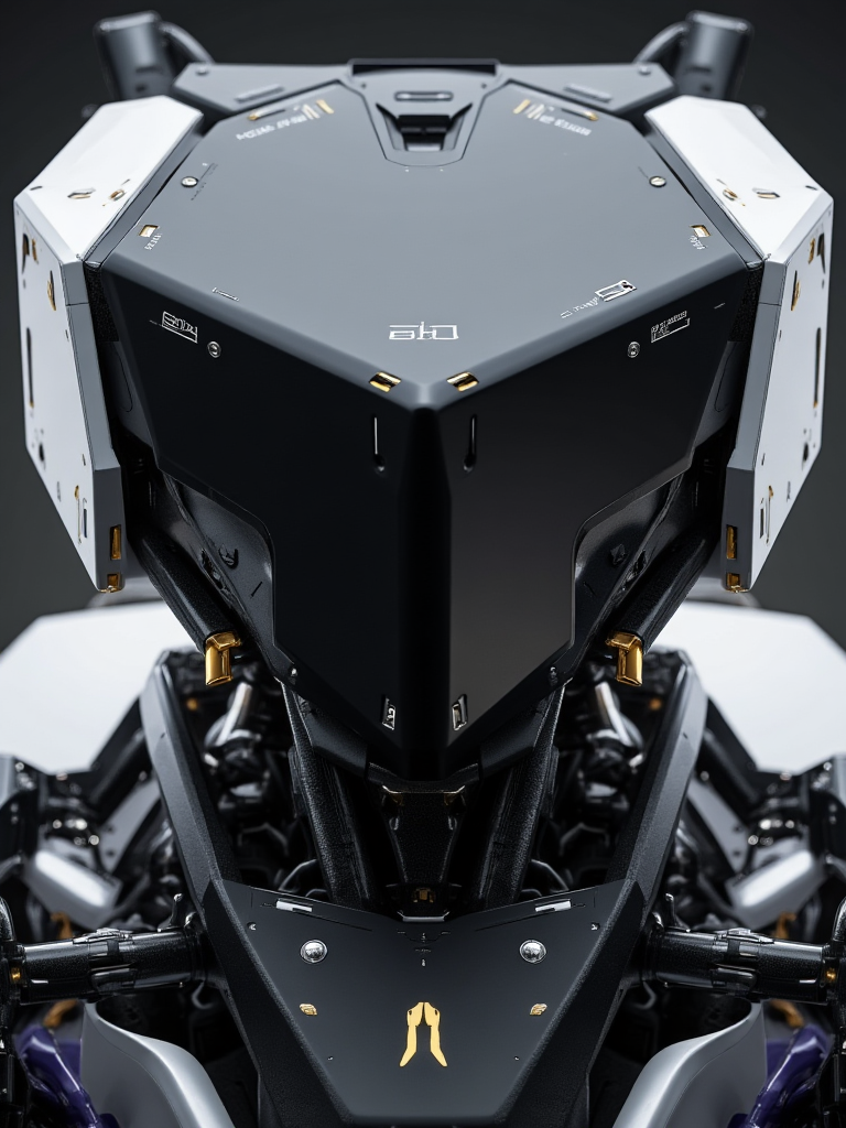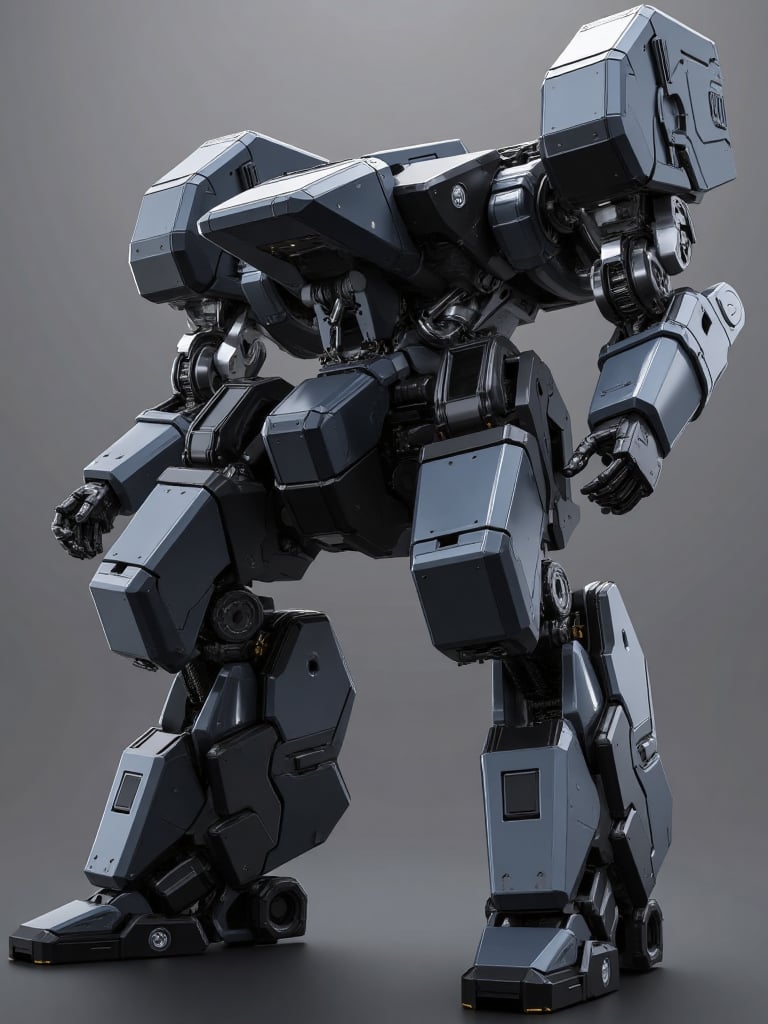 Exquisitely designed mech of boxy semi angular plaque, complex exposed machinery