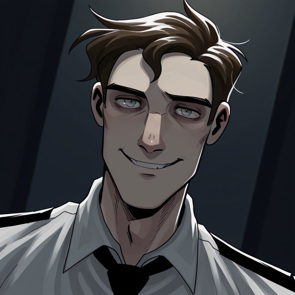 WilliamFNAF, brown hair, short hair, grey eyes, mature, male