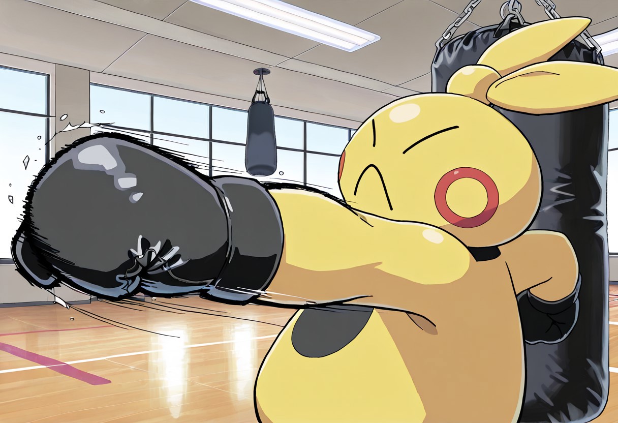 Shiny Tags: Shiny_Makuhita, beige body, red marking, red boxing glove hands