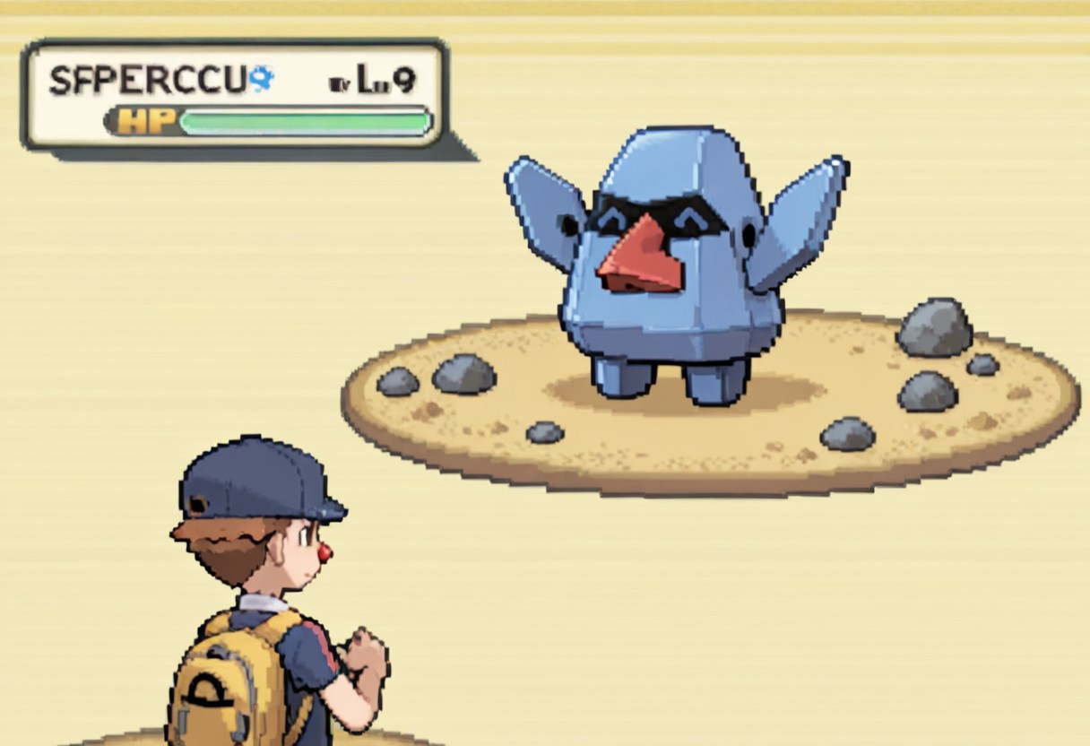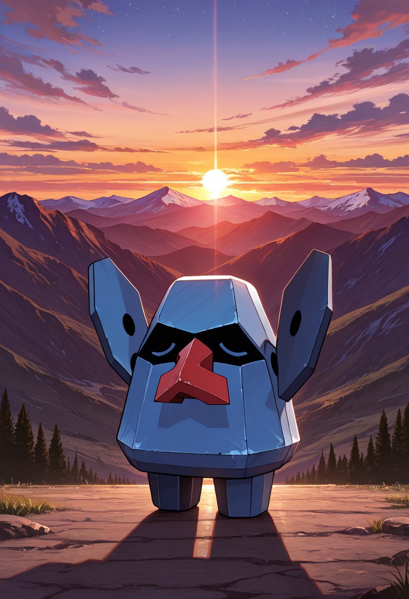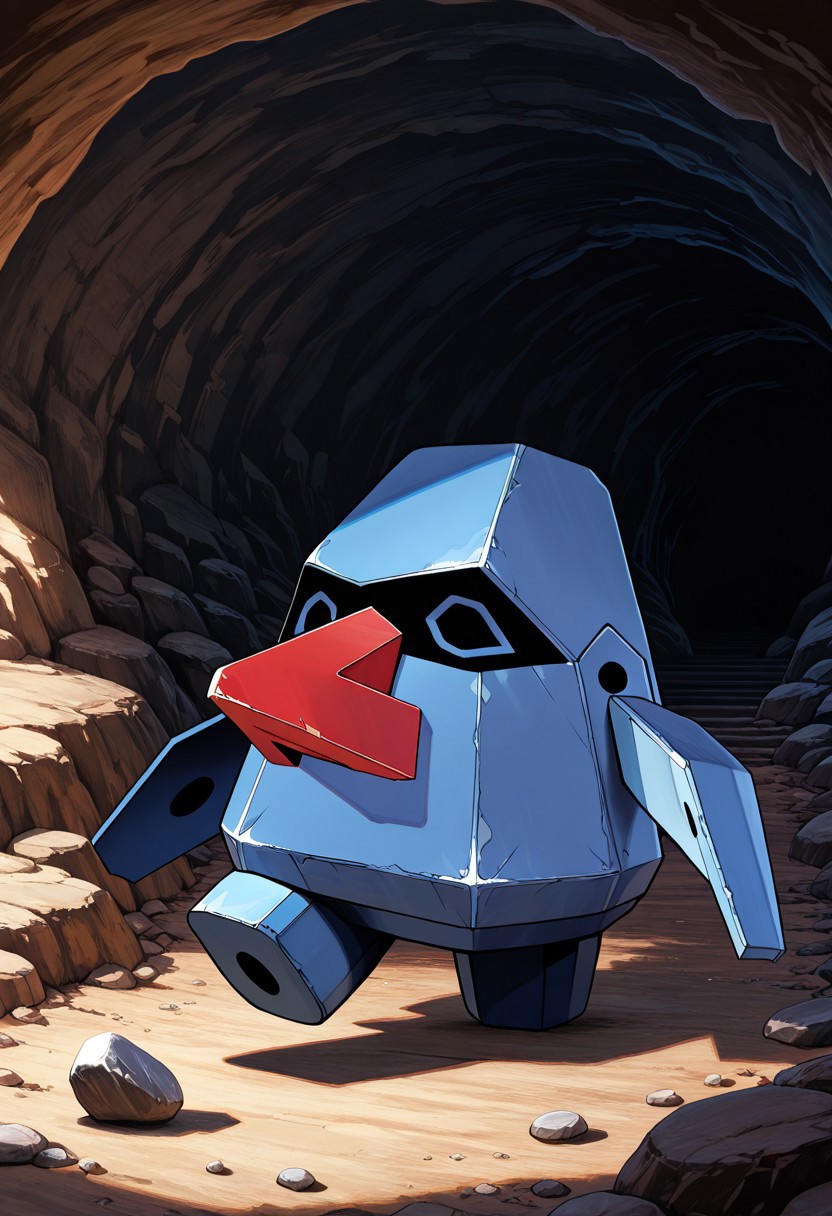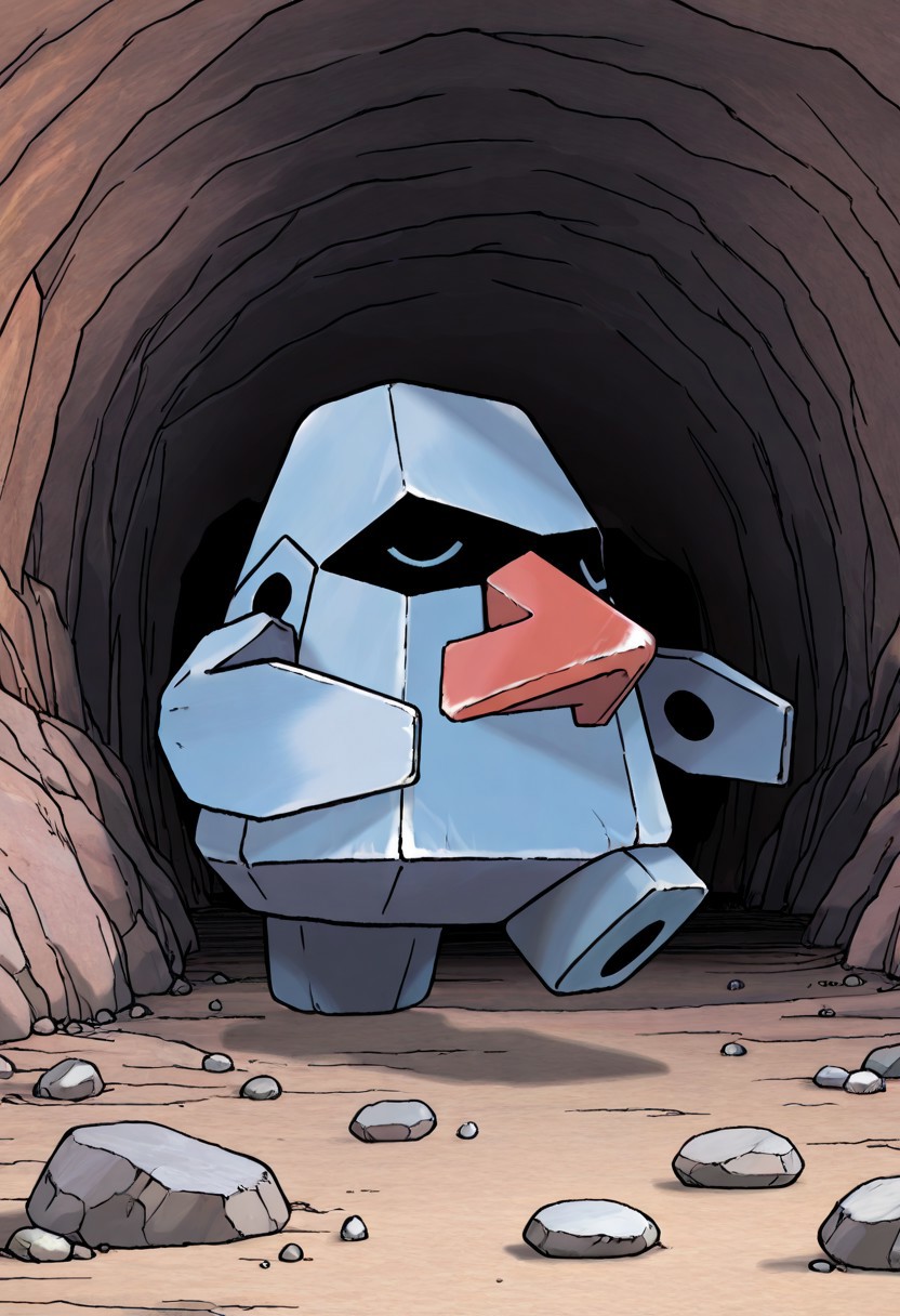 Nosepass_pkmn, blue skin, red nose, geometric body, geometric arms