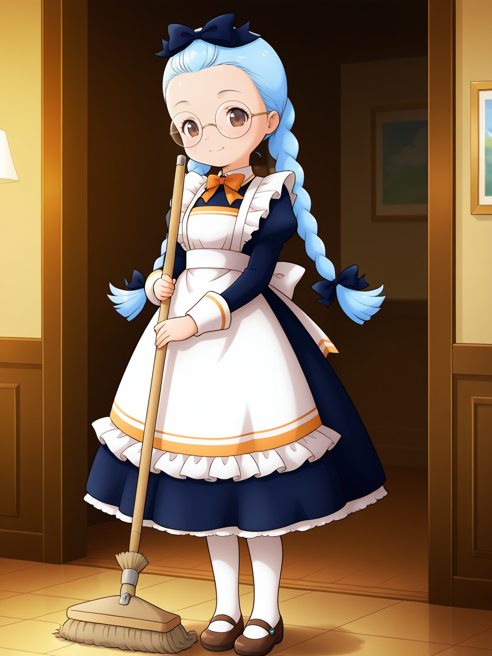 maid, apron, glasses, round eyewear, white pantyhose,