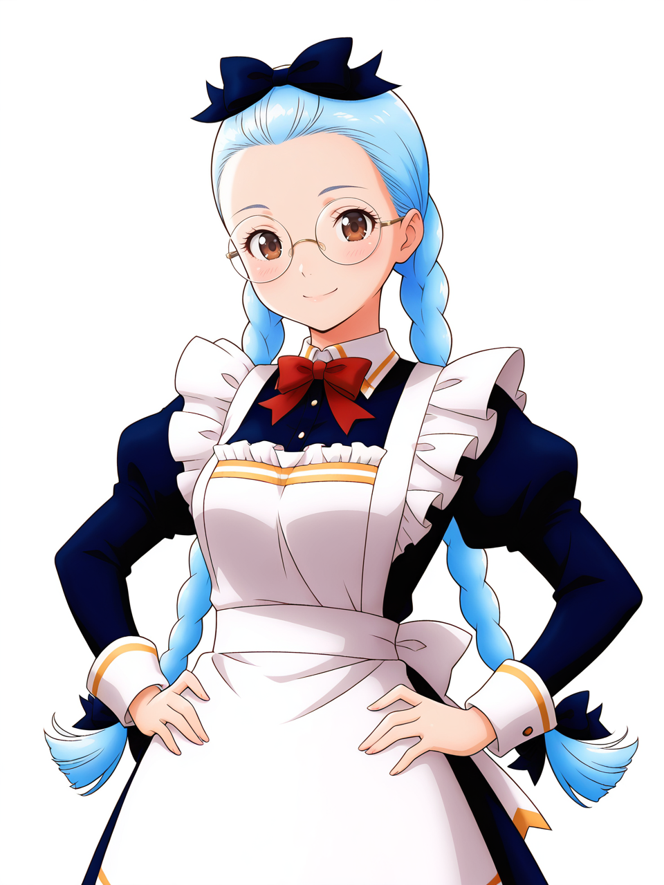 holvgina, long hair, brown eyes, blue hair, braid, twin braids, hair bow, twintails,