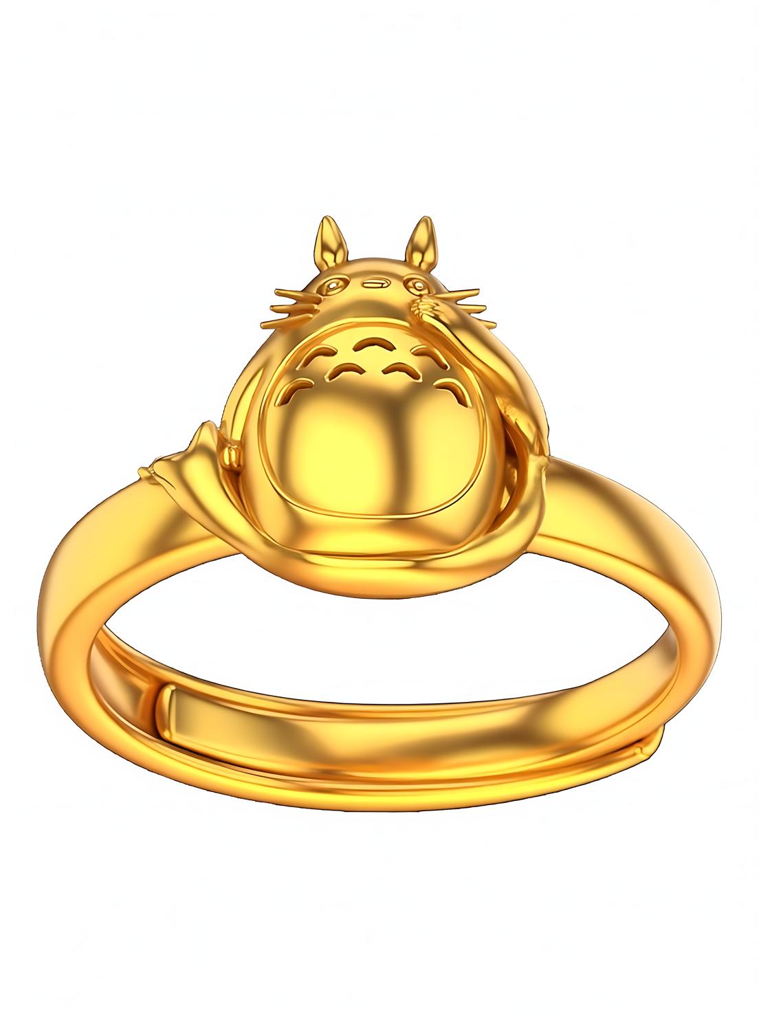 • 推荐Prompt: GoldenRing, 金色戒指,设计独特,顶部为龙猫造型。戒指环身宽厚,线条流畅,整体呈现高贵典雅风格。背景简洁,突出饰品细节与质感。 (用中文效果可能会更好)
