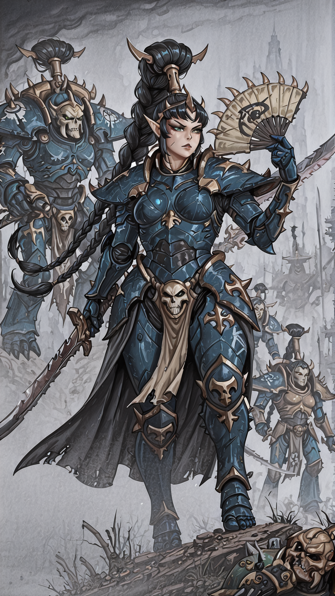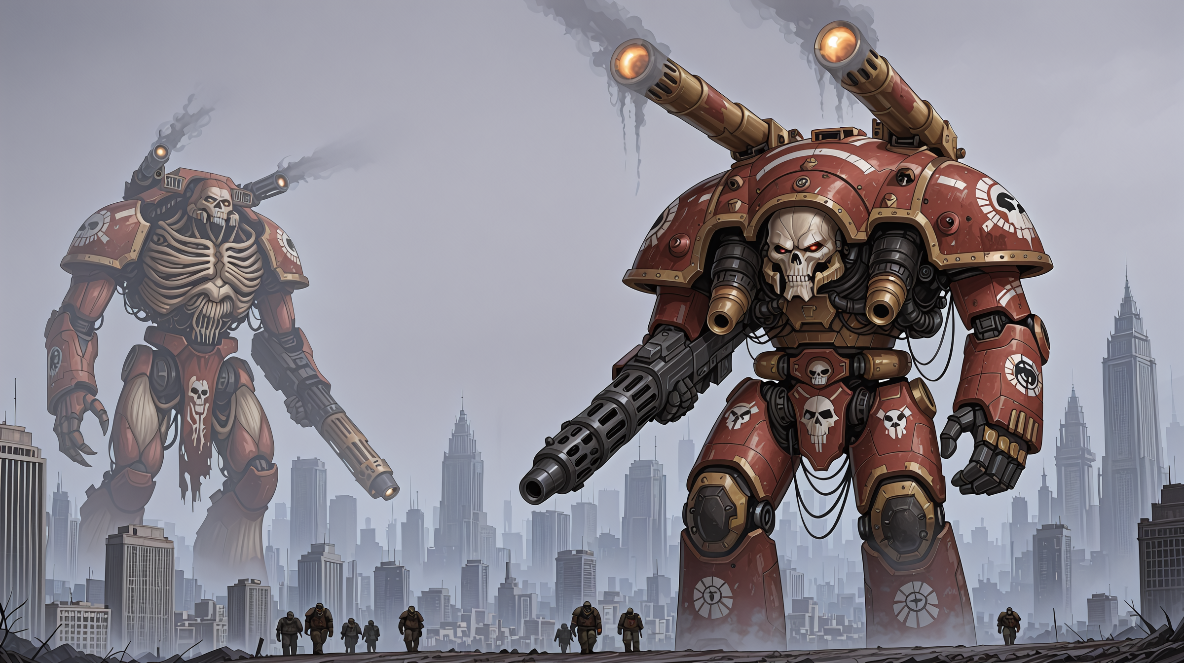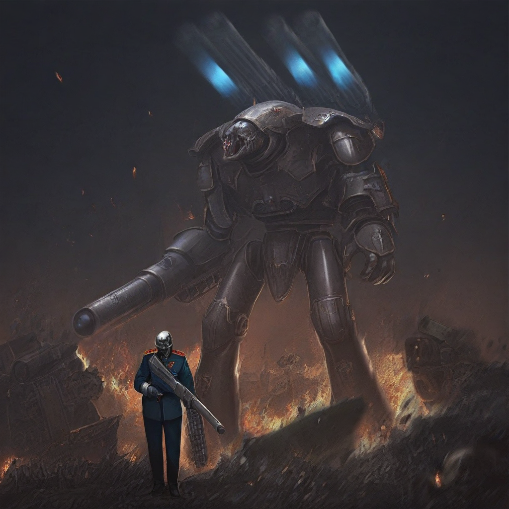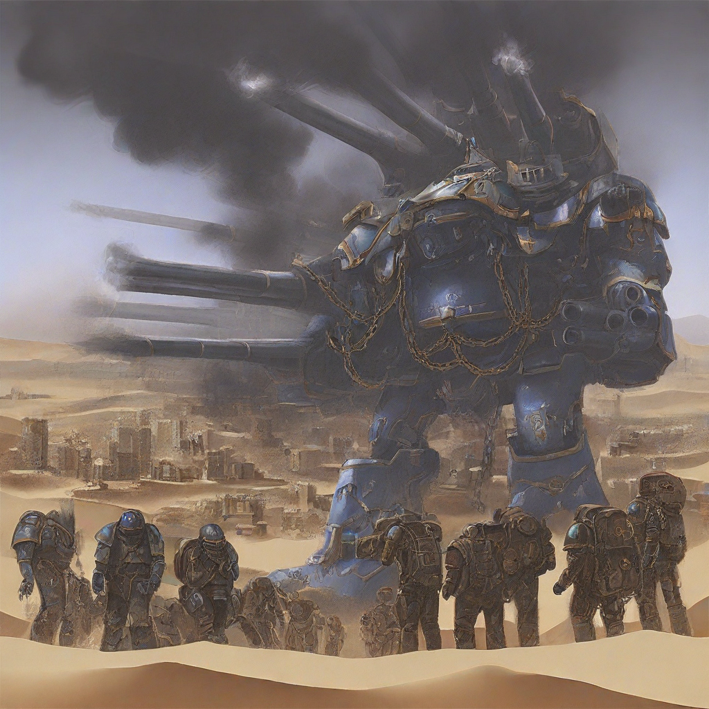 This model was intended to depict Titans from Warhammer in the background of the picture.And it works — kind of. However, it also alters the overall style of the entire image.
