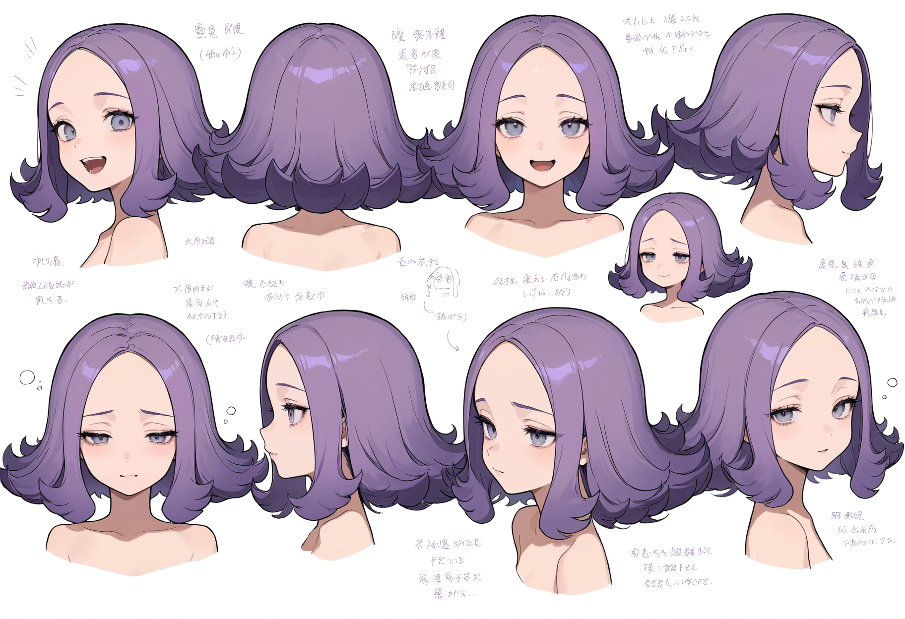 1girl,eyelashes,grey eyes,purple eyes,purple hair,short hair,medium hair,flipped hair,bangs