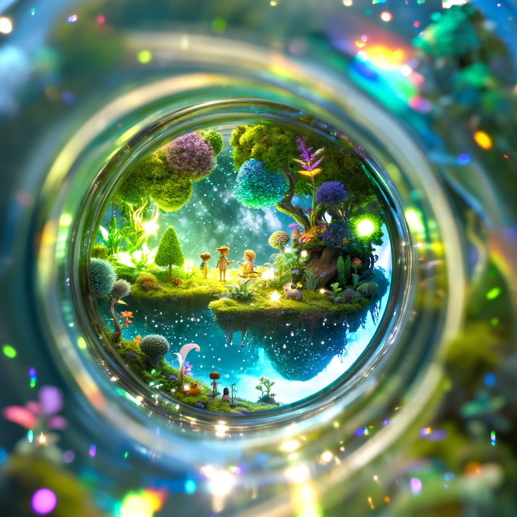 Just tell it you want a "miniature world" and add where to find it—in a bottle, in a pocket, in a light bulb, or under a glass dome. Keep the LoRA weight around 0.8 - 1.0 and watch the magic happen.