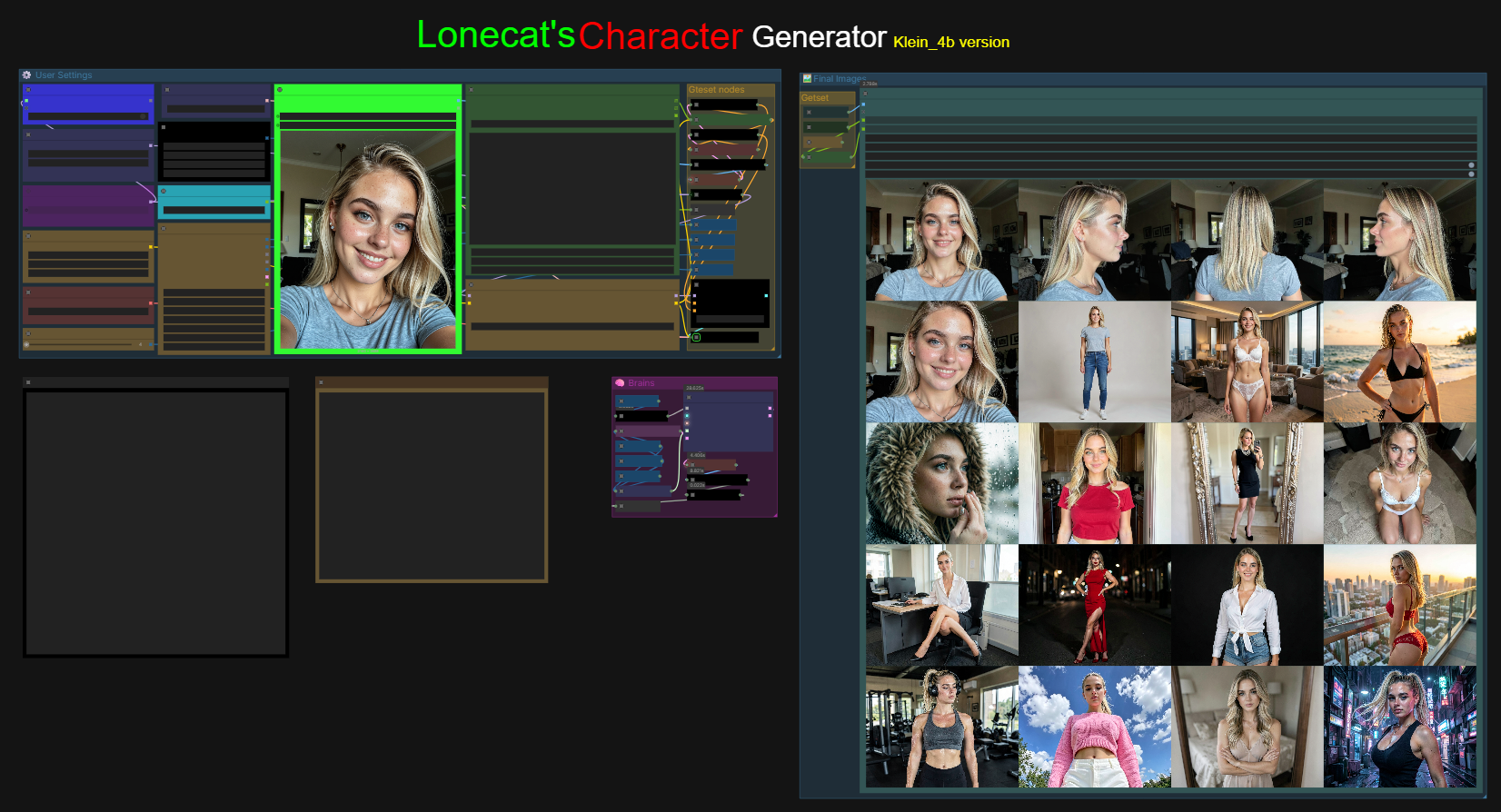 Uses Klein 4_B with any good facial image to create 20 different images.