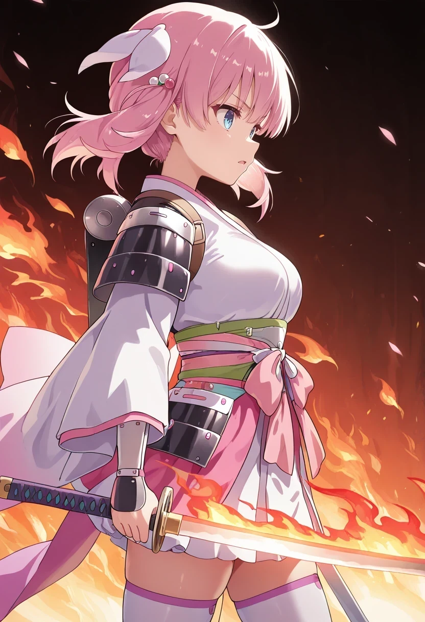 japanese clothes,backpack,detached sleeves,white thighhighs,