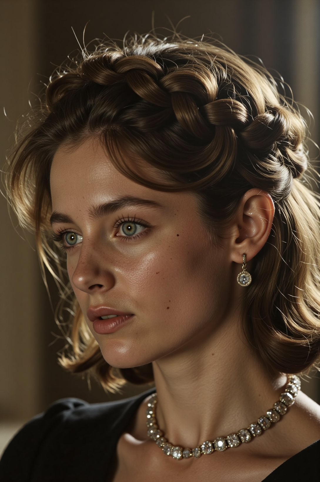 hair in a cute elegant short-length wavy crown braid hair