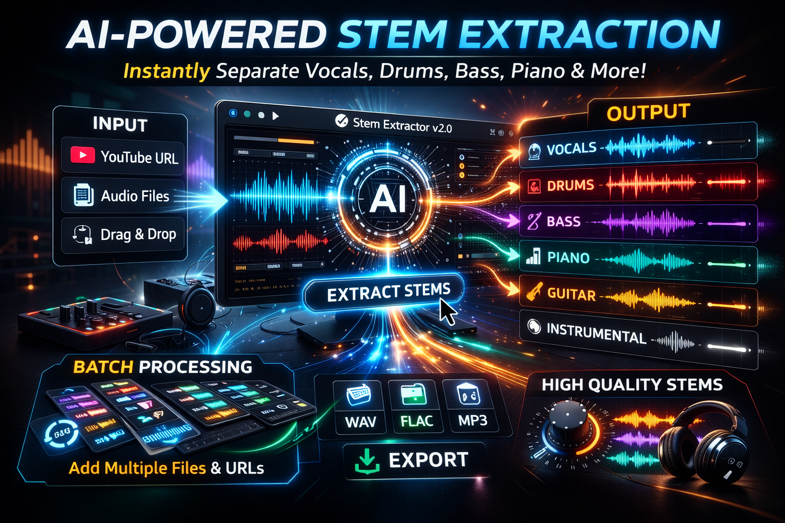 🎵 Stem Extractor v2.0 isn’t “another separator.” It’s the creative engine that unlocks the raw DNA of any track and turns it into usable material for producers, remix artists, beat makers, AI vocal trainers, and content creators.