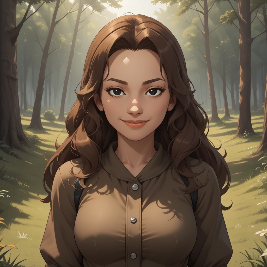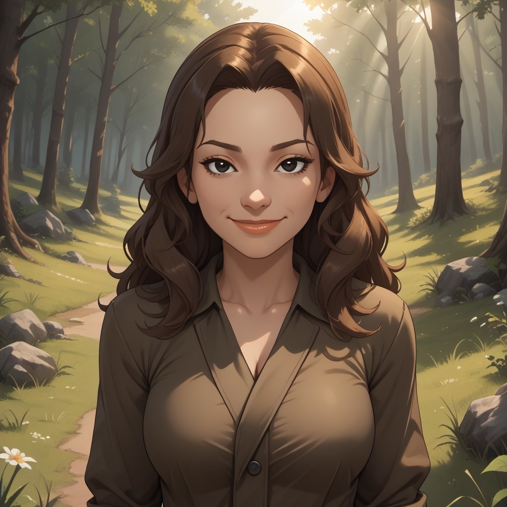 wii, mii, wii sports, 1girl, cute, female mii, brown hair, brown eyebrows, black eyes, lips, brown clothing, black pants, barefoot, TomokoWSR, breasts, nintendo mii, modern_mii, classic_mii