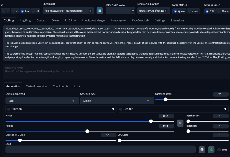 “This model represents a unique fusion of traditional sculptural techniques and modern, abstract digital aesthetics. It features figures, animals, and forms crafted from wood, with portions of their structure disintegrating into geometric wooden voxels. The pieces capture a moment of transformation, where solid forms deconstruct into fragments, symbolizing the balance between cohesion and chaos, presence and absence. This style, characterized by the juxtaposition of smooth, organic forms with cubic, pixel-like disassembly, offers a visual narrative of fragmentation and reassembly. It’s a powerful artistic expression that combines the warmth and texture of natural wood with a digital-inspired, modern abstraction, suitable for creating visually compelling sculptures, 3D models, and artistic installations.”
