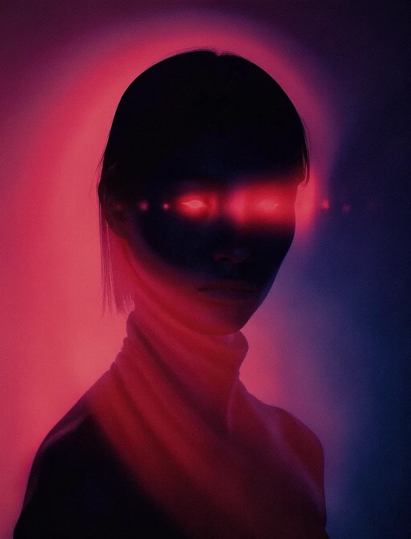 Prompt inspiration: spectral glow, chromatic grain, motion blur, diffuse silhouette, light leak effect, prism effect, inverted negative film, ethereal, light background, dark background