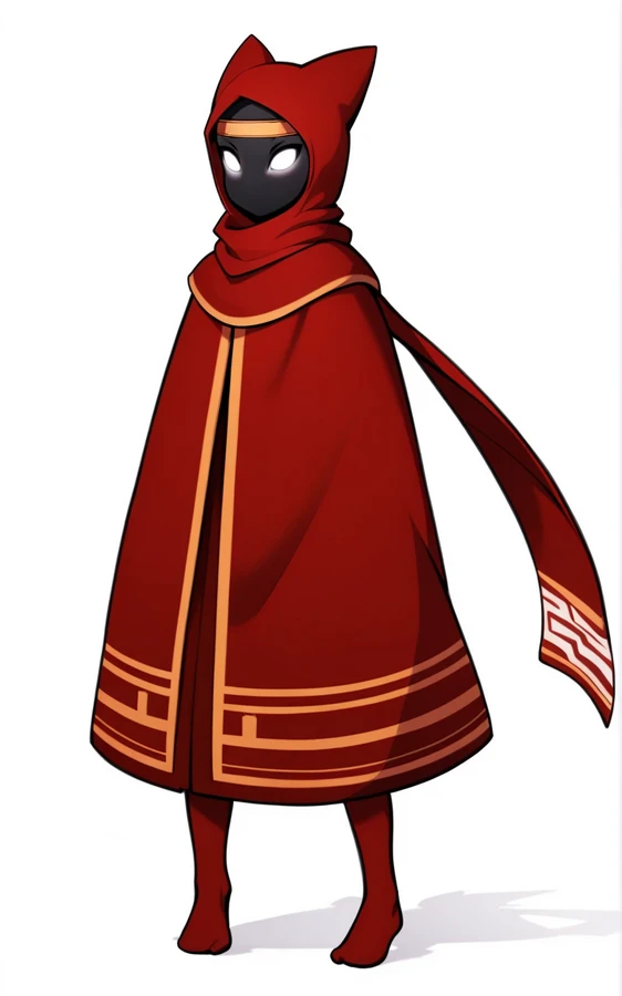 For Outfit: hooded cloak, hood, hood up, robe, ofuda, scarf, red thighhighs OR red legwear, headband, golden headband