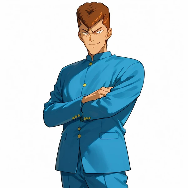 Basic prompts : 1boy, kuwabara, brown hair, short hair, black eyes, pompadour