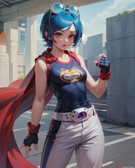 mayleems gloves goggles eyewear on head belt goggles on head scarf pants shirt fingerless gloves cape red scarf