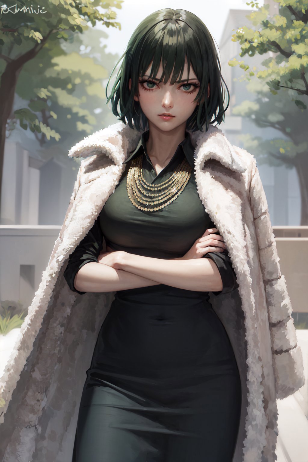 https://civitai.com/models/72553/justtnp-fubuki-or-one-punch-man Tags: fubuki , green hair , taut clothes , fur coat , jewelry , necklace
