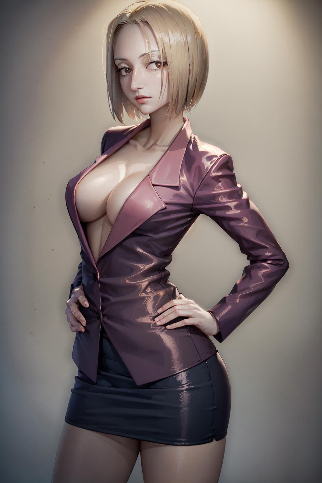 https://civitai.com/models/40300?modelVersionId=46556 Pakunoda's Trigger + Appearance: pakunoda, brown eyes, formal, suit, pencil skirt, cleavage