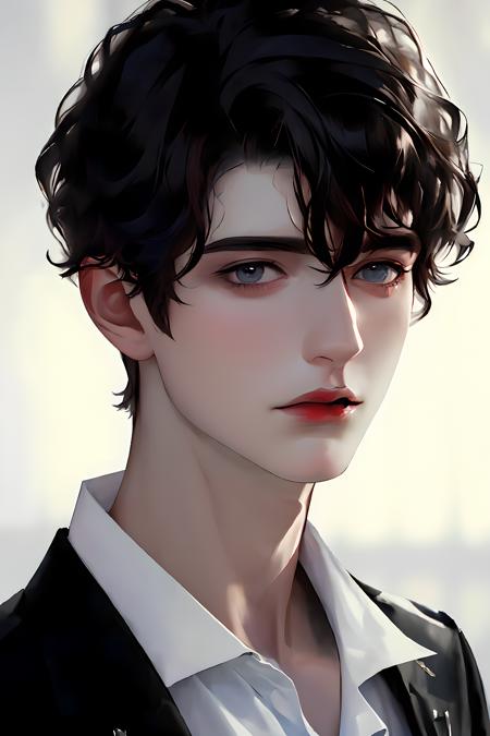 Common keywords:CGhandsomeboysw, 1boy, male focus, solo, looking at viewer, short hair, shirt, formal, upper body, closed mouth, black jacket, hair between eyes, jacket,suit,