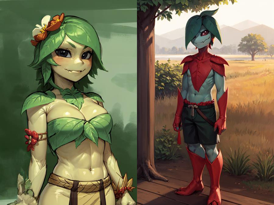 This is a lora trained on a whopping 185 hand picked images of the Floran alien race from Starbound! It was trained on exclusively digital art. It wasn't trained on any specific floran, but just the race in general. I'm quite satisfied with the results of this lora, mostly because of the variety you can get from the characters. It was trained on e621-style tags, so use those when trying to prompt - I've included the tags in a .txt file in the "Training Images" download below.