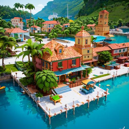 Tropical Buildings, (Mario Sunshine, Delfino Plaza) Scene LoRA - V1.0