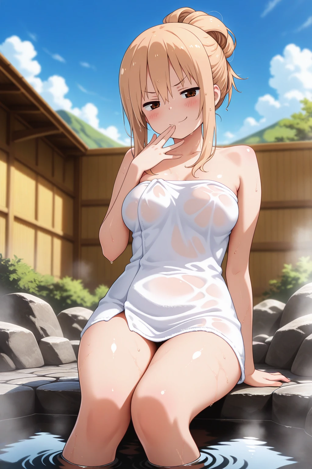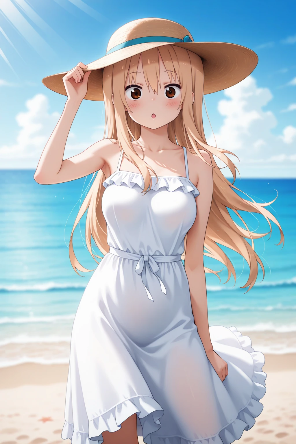 umaru, long hair, blonde hair, sidelocks, brown eyes,