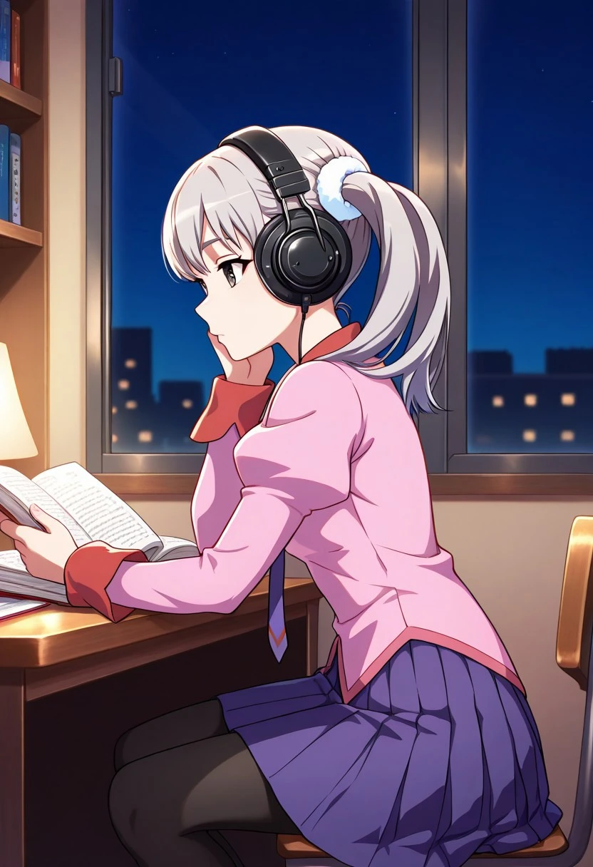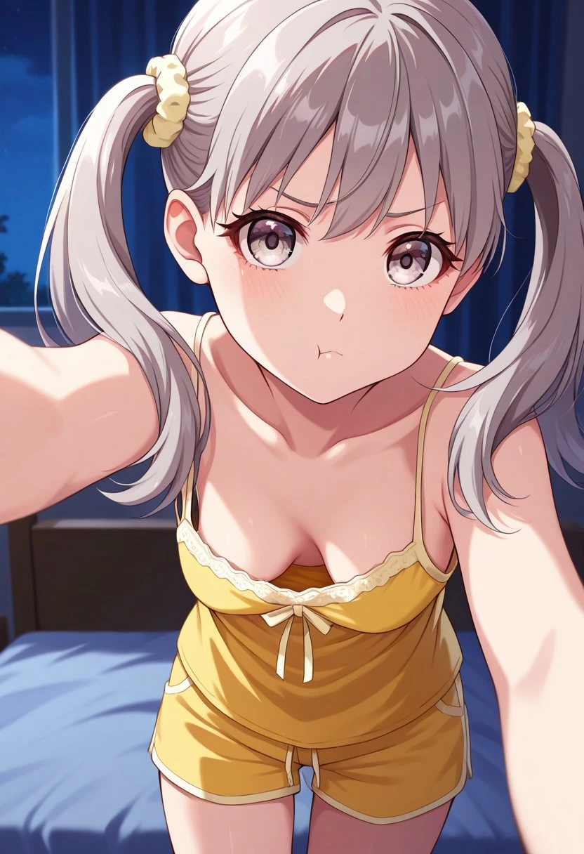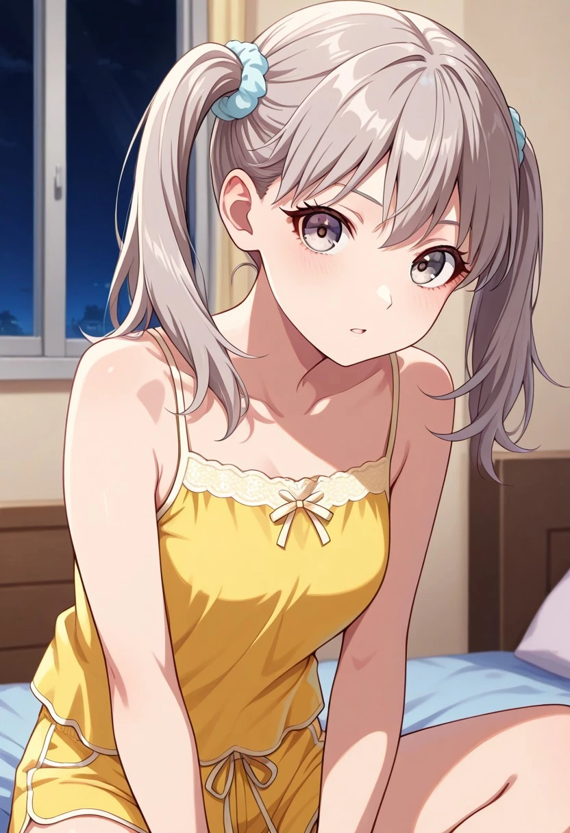 Trigger: SodachiOikura, grey hair, grey eyes, scrunchie, twintails, long hair,