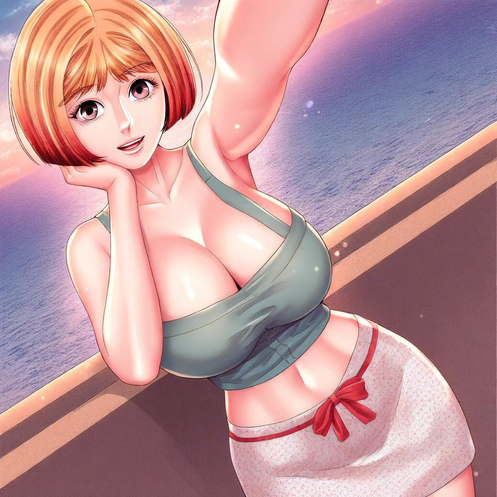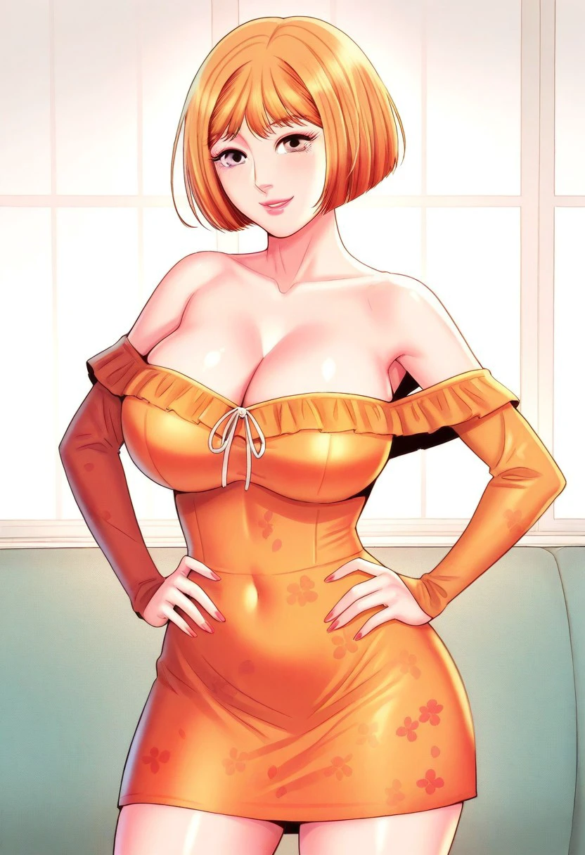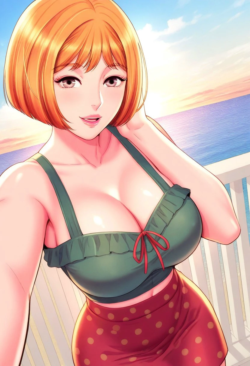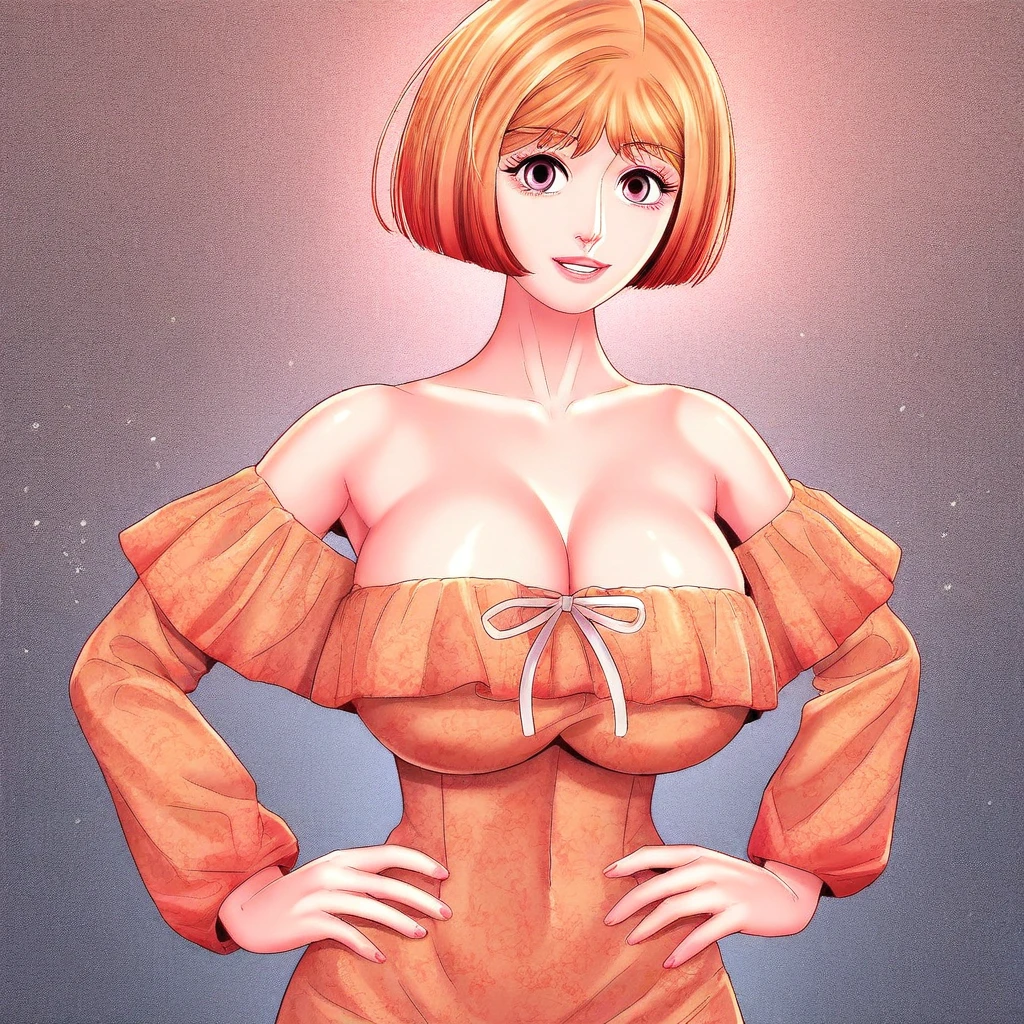 (( <lora:mi-ri:1> , mi-ri, thin waist, wide hips, beautiful skin, piercing light brown eyes, clear eyes, bright pupils, beautiful eyes, beautiful orange hair, beautiful medium bob haircut, bangs, huge and shaggy breasts, natural beauty, extraordinary beautiful woman, attractive woman, super sexy woman, lustful body, sexy woman with seductive obscene body, sensual body, voluptuous body, sexy beauty, no piercings, no piercing, ))