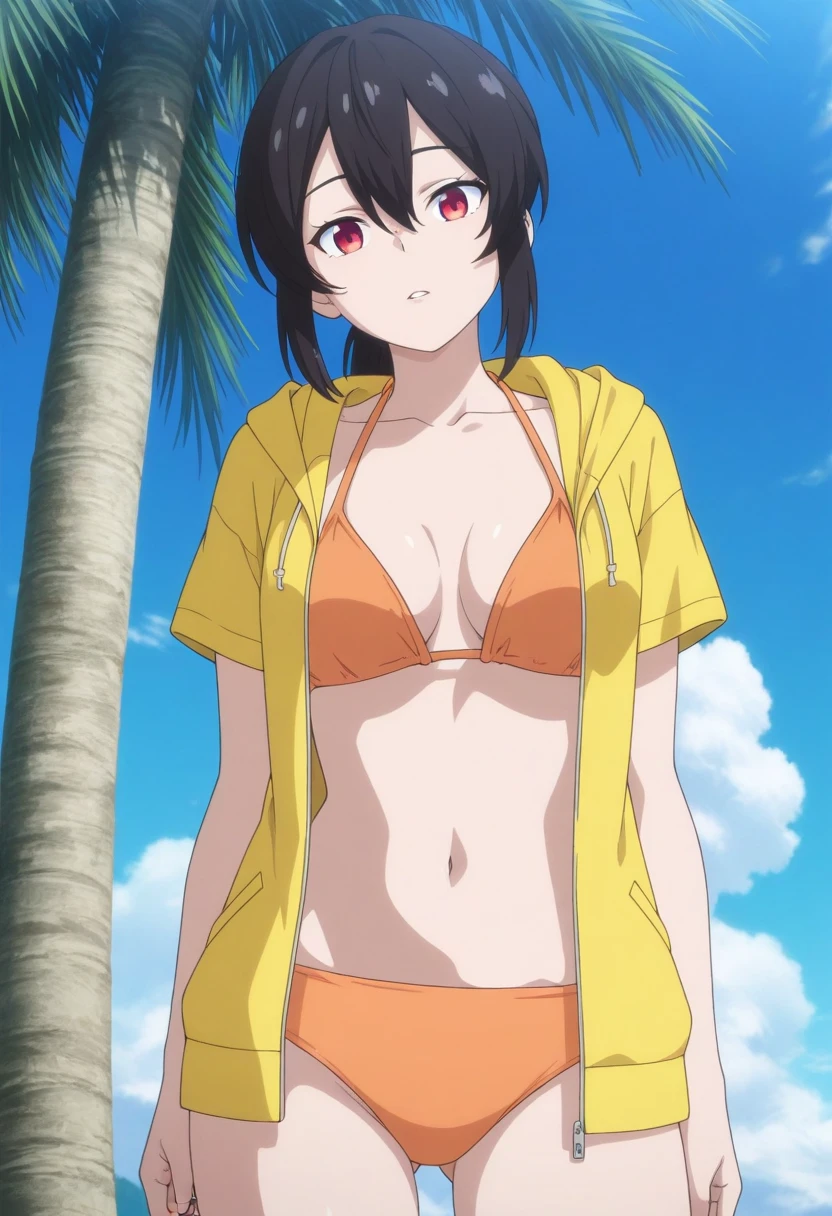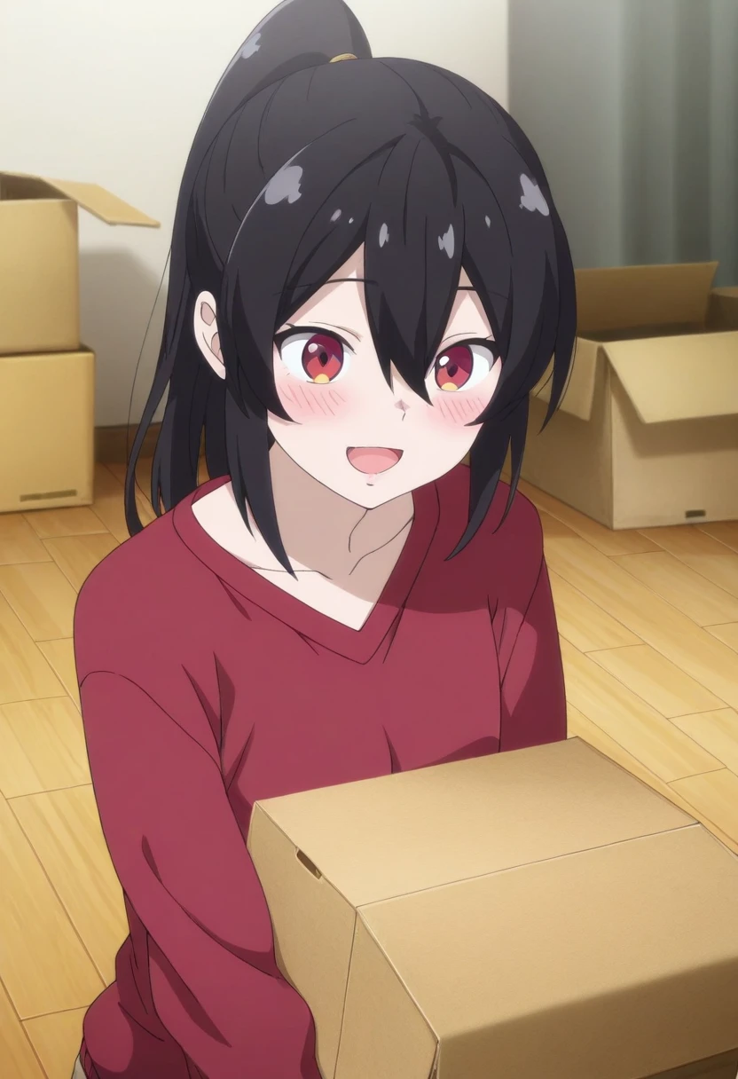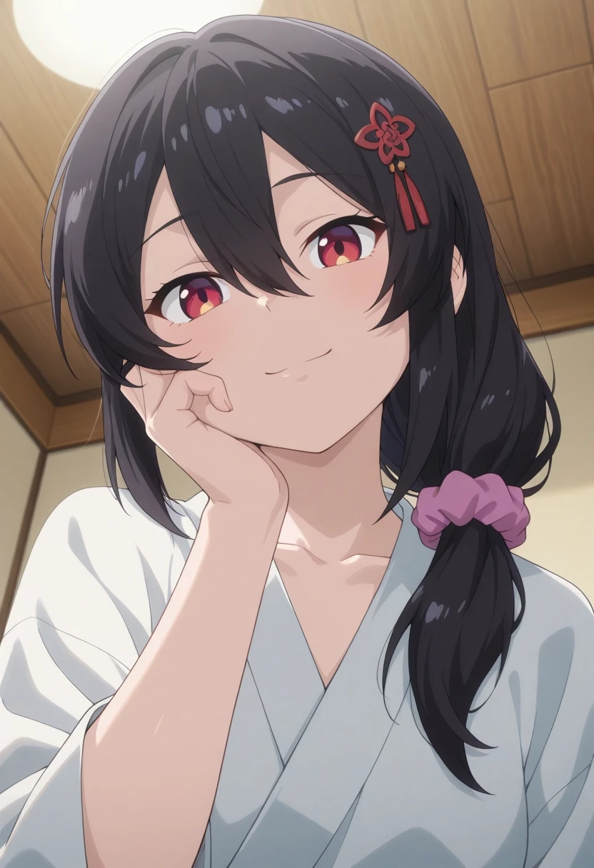 Trigger Words: yobane suzume, long hair, black hair, red eyes, ponytails