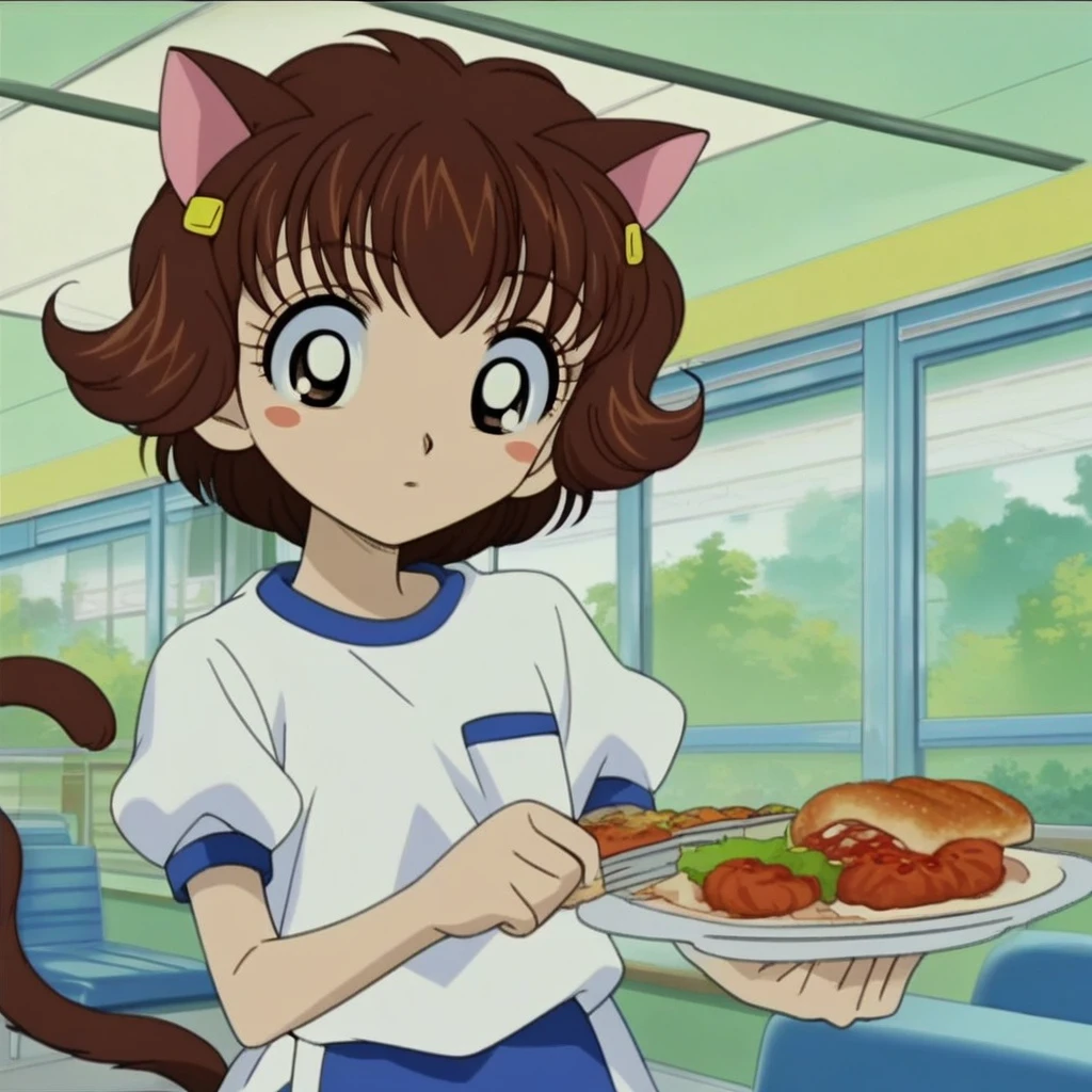 hiroko haruna, hamtaro, brown hair, twintails, hairclip, brown eyes, blush stickers