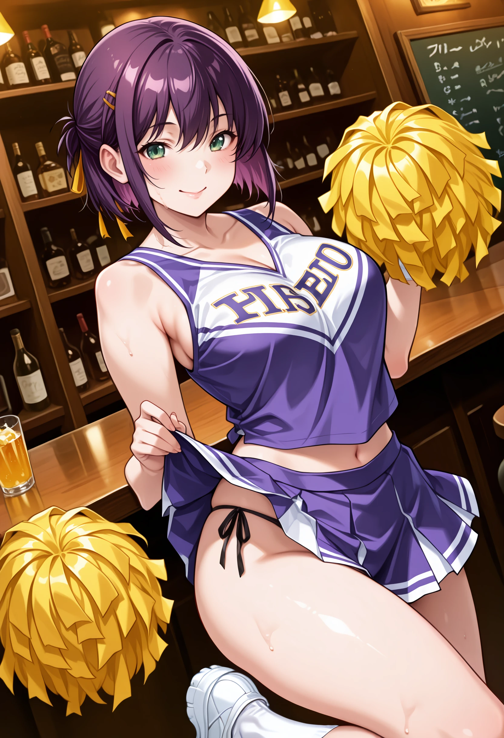 PPPAnna, short hair, large breasts, green eyes, purple hair,