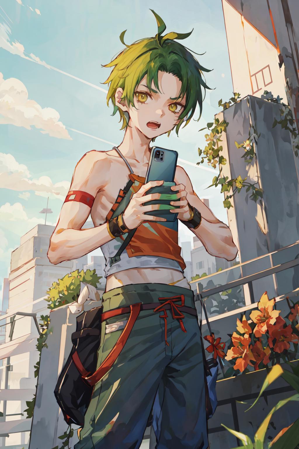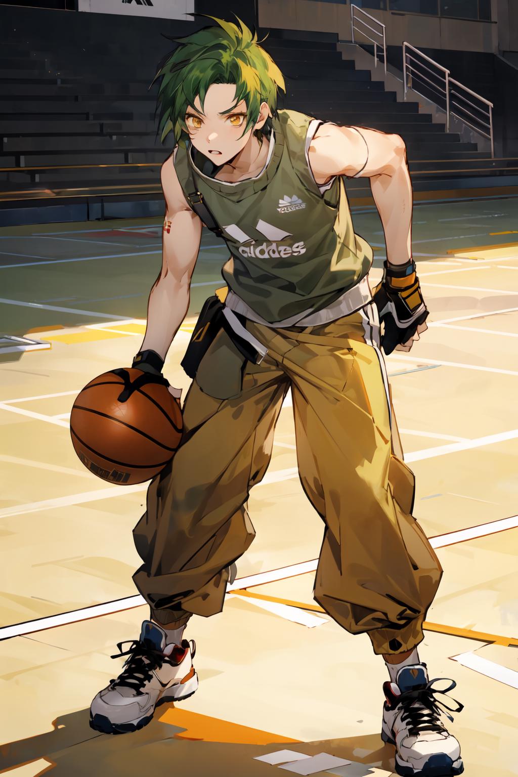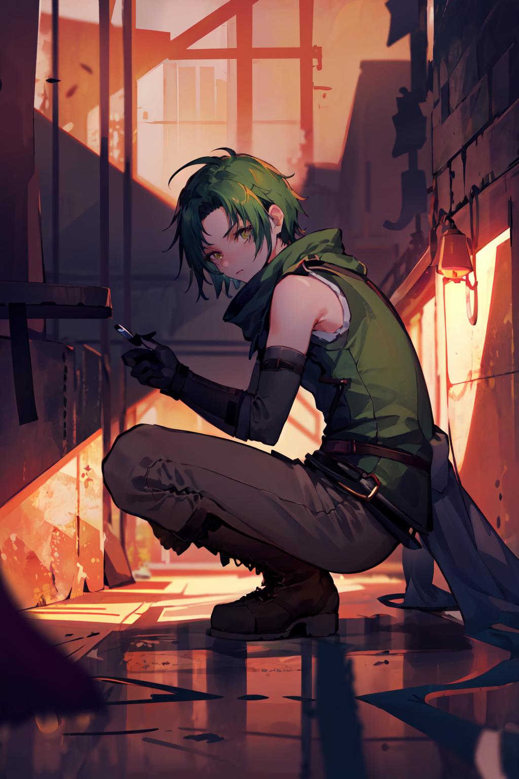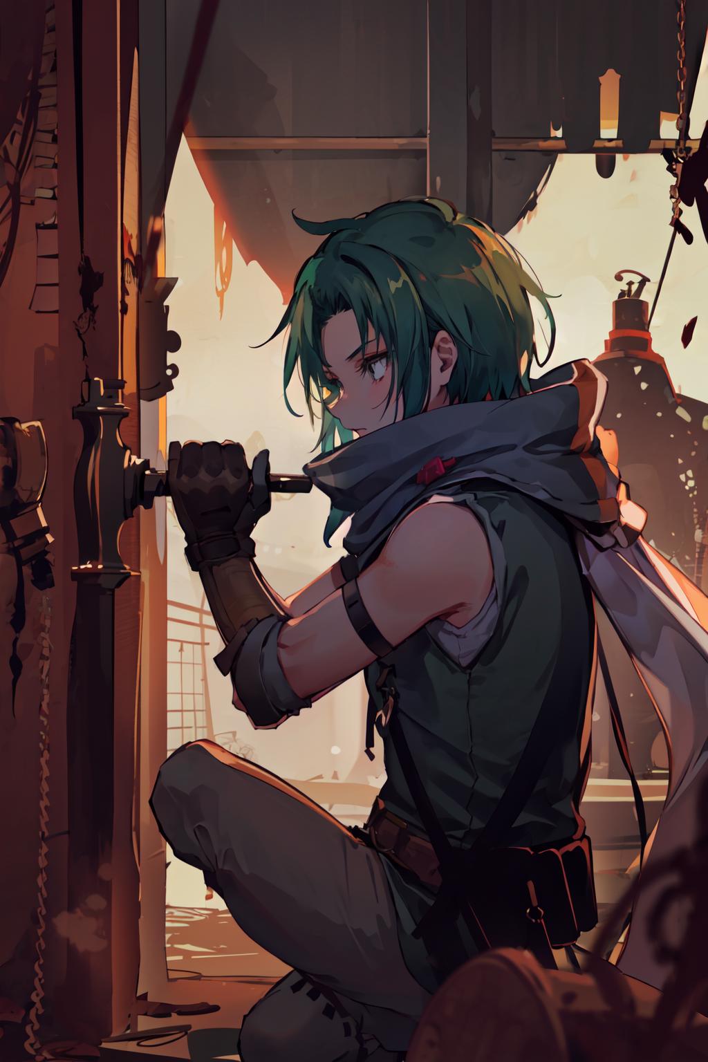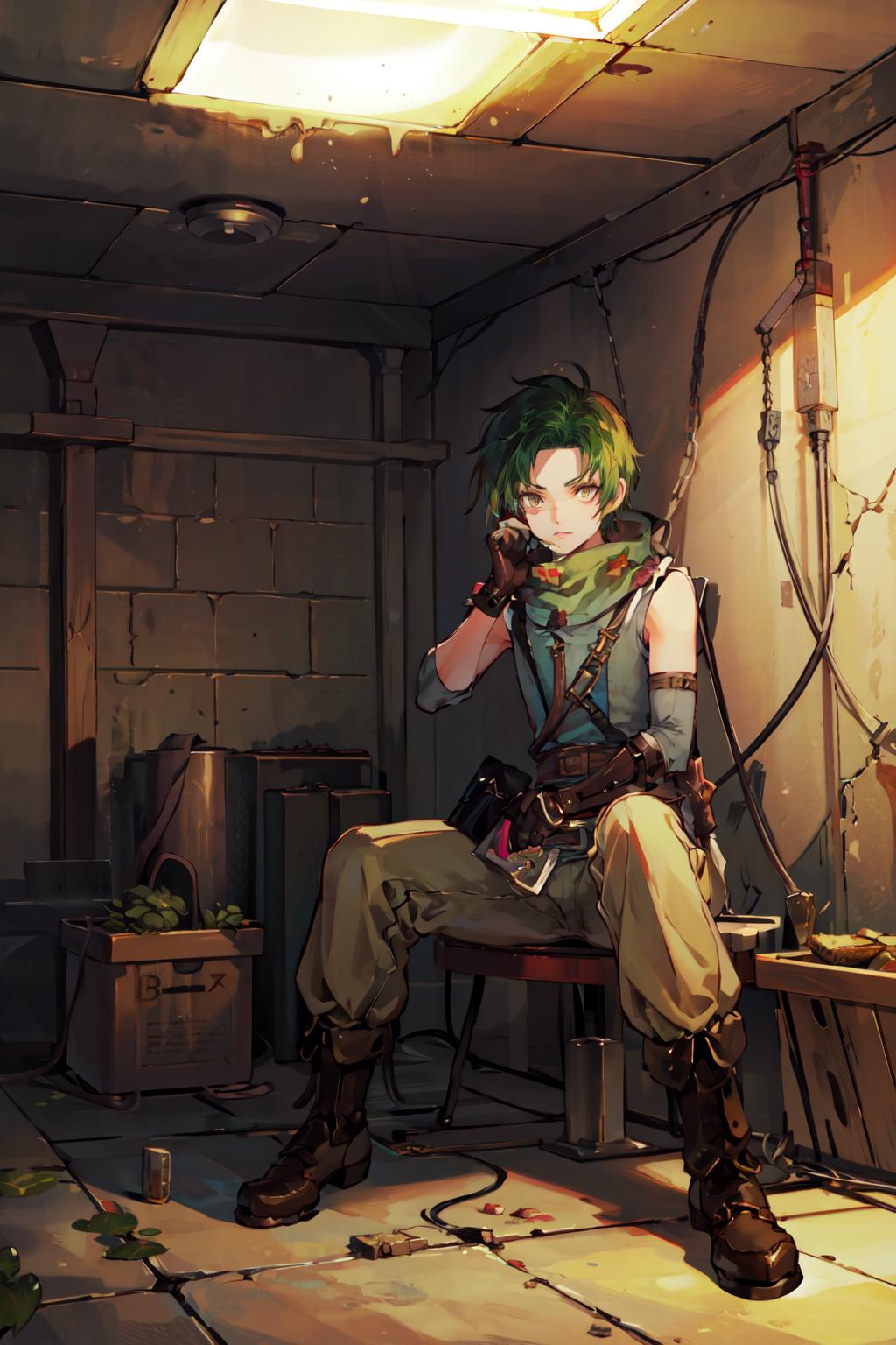 This is Sothe's Path of Radiance design, not his Radiant Dawn one. But since his clothes in both games are pretty much the same, you can prompt midriff and get something that looks very similar to RD Sothe. That said, his PoR design is cooler and I will DIE ON THAT HILL.............. fite me.