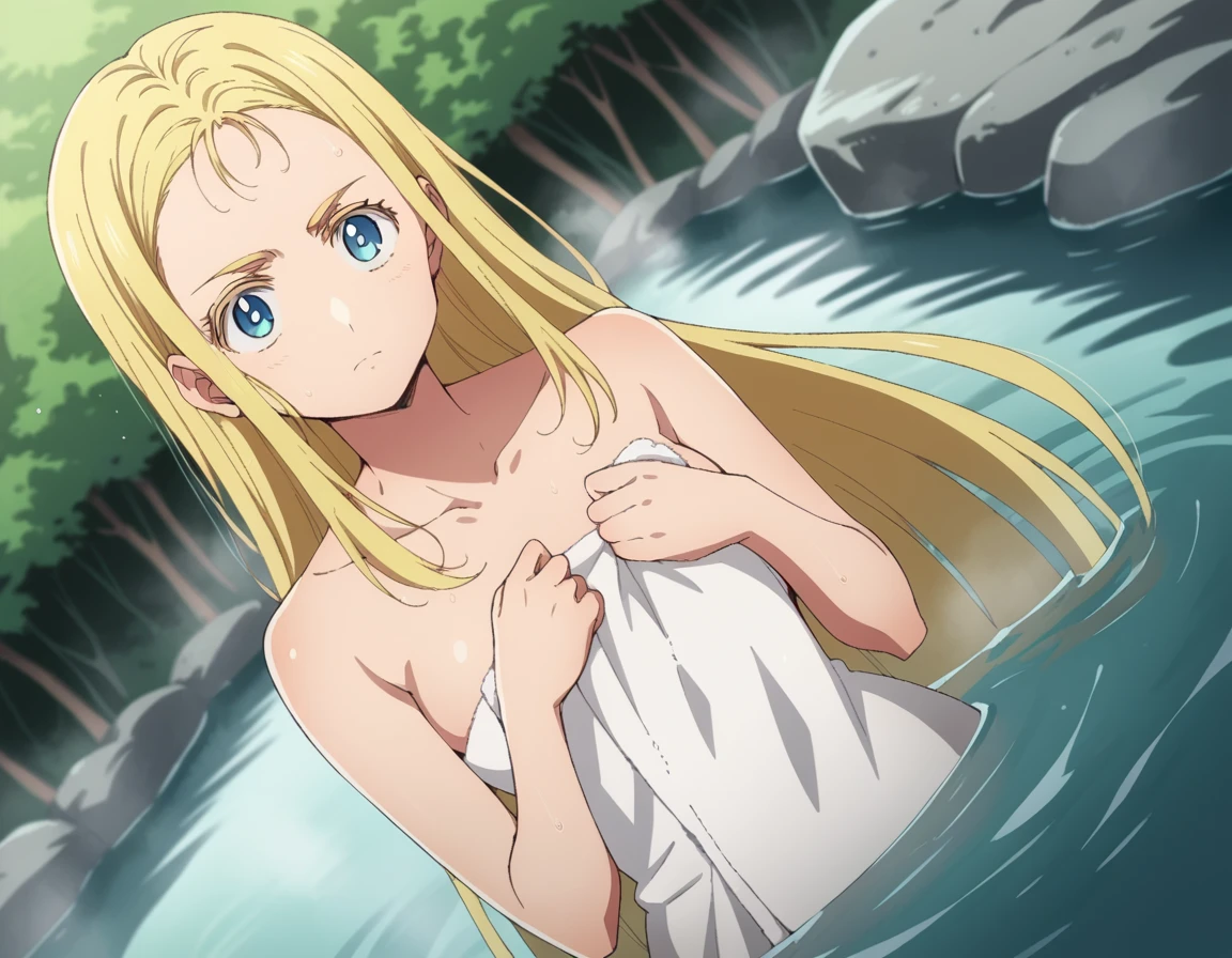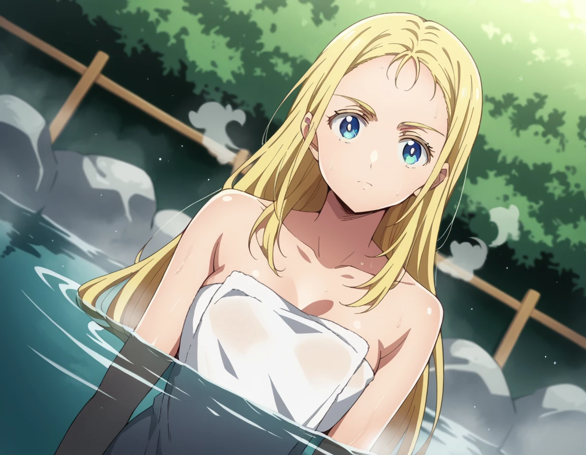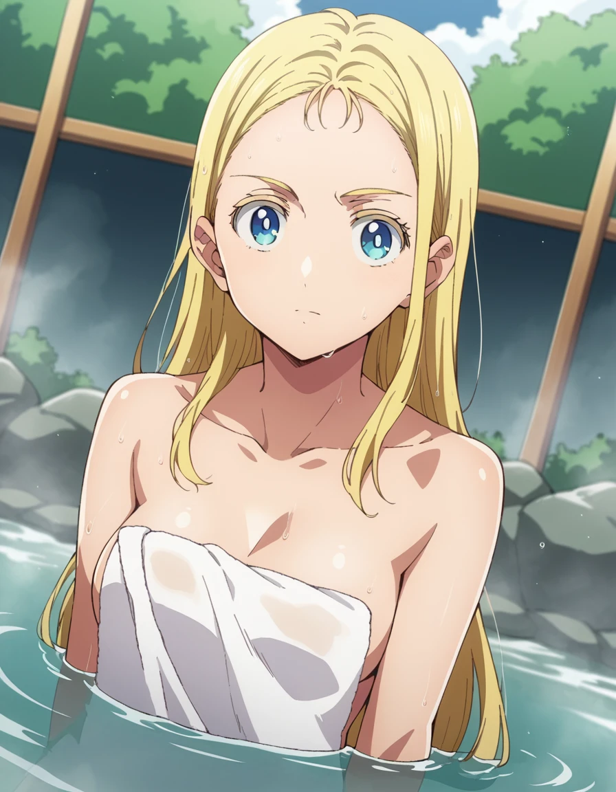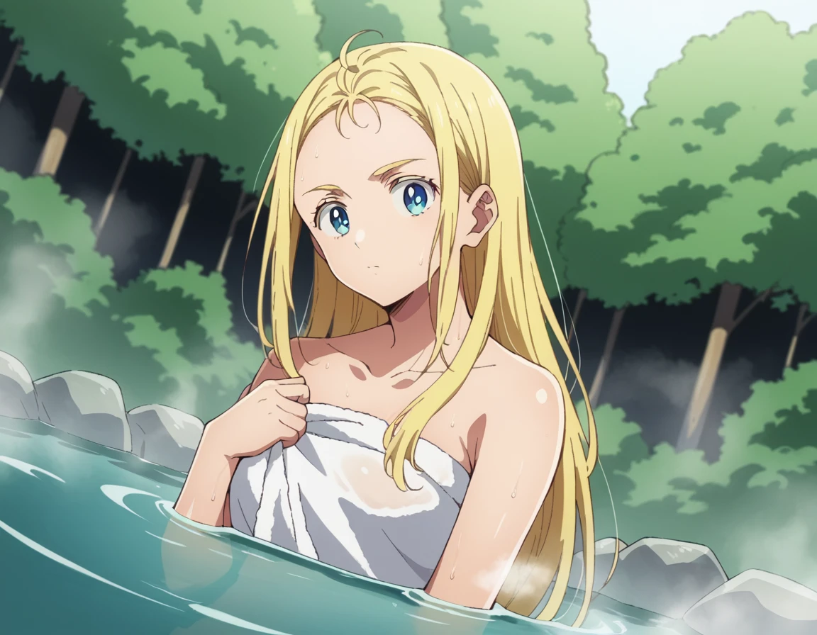 ushio kofune, long hair, blue eyes, blonde hair, very long hair, straight hair, forehead,