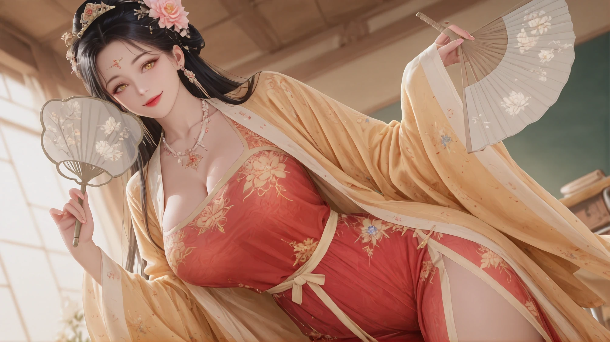 [IL Dress 38] chinese dress hanfu Splendora: Weave Civilization's Zenith into Silk(two styles) - Yellow Out Red Inner
