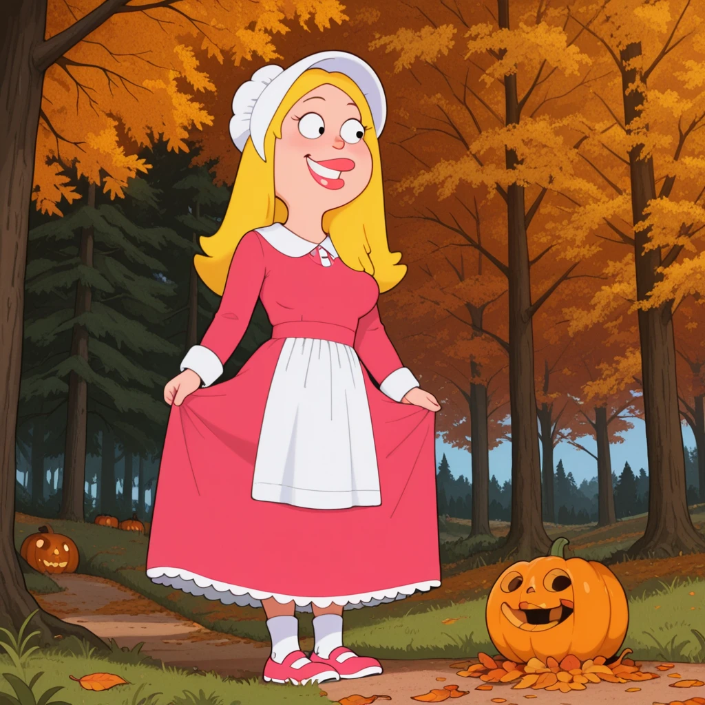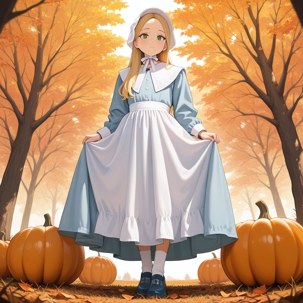 white bonnet,black dress,long dress,white cuffs,white collar,white apron,black shoes